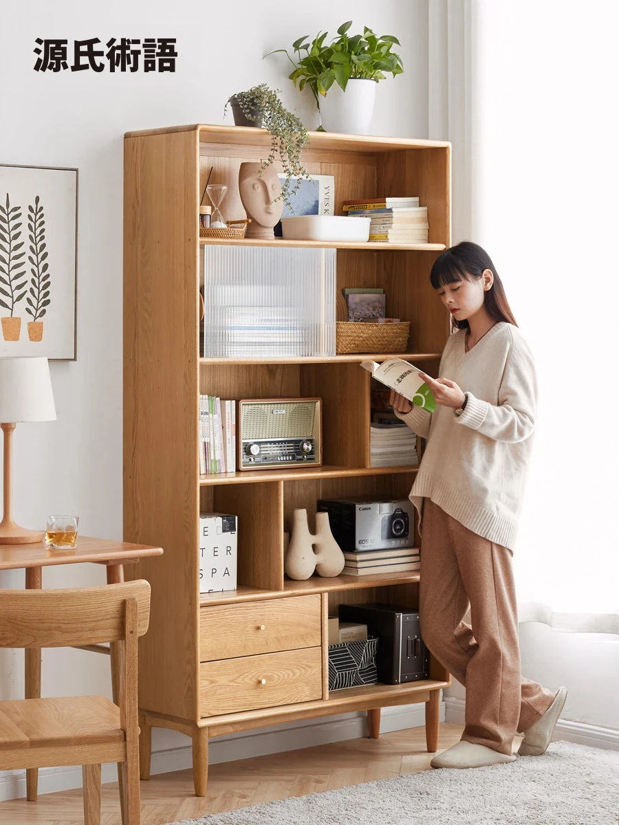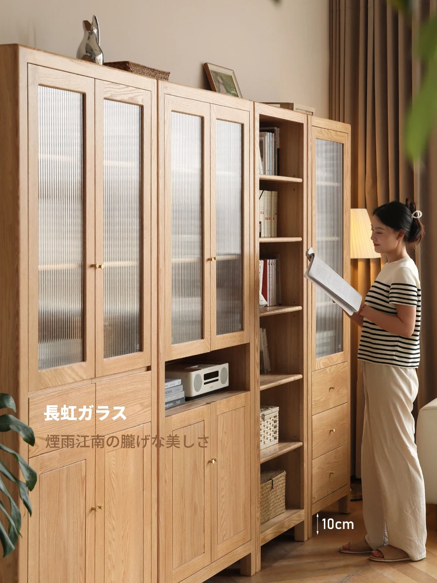 ゲンジ木語の無垢材ブックキャビネット - 北欧オーク製、モダンでシンプルなデザインのリビング収納庫、ガラス扉付きでスタイリッシュな家庭用書棚。あなたのインテリアにぴったりの一品です!