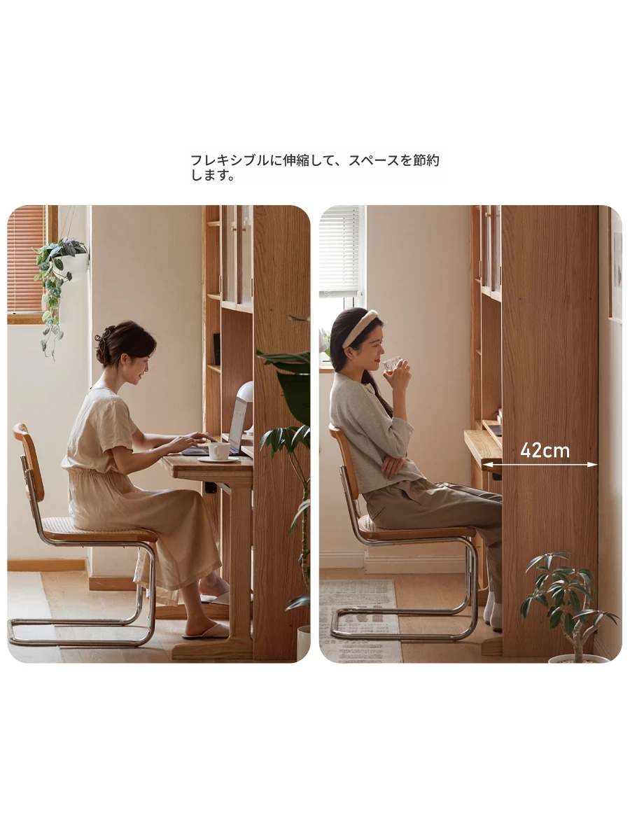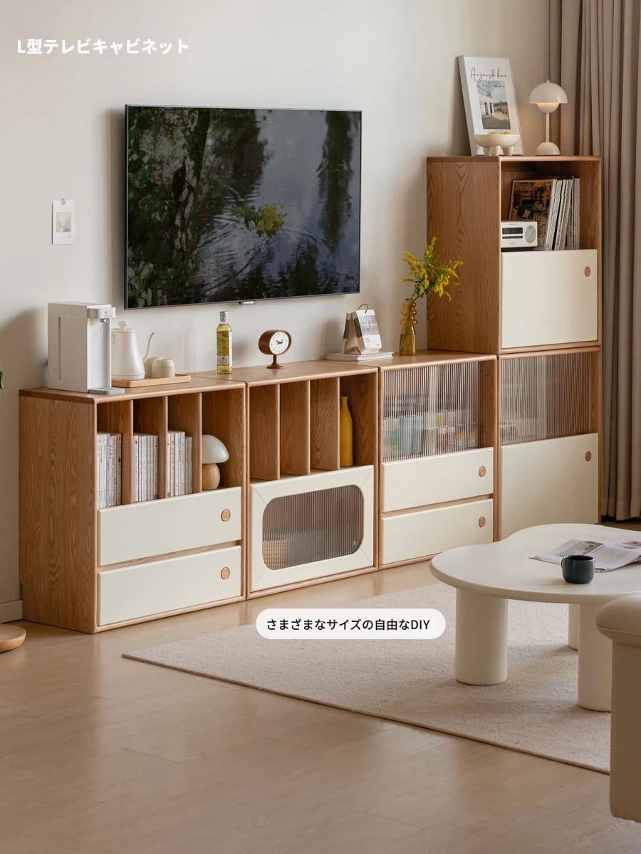 源氏木语の天然木製書棚 - おしゃれなクリーム色で書斎を演出!オーク材使用、収納にも最適なモジュラー型テレビキャビネット。あなたの生活空間を美しく整理整頓!