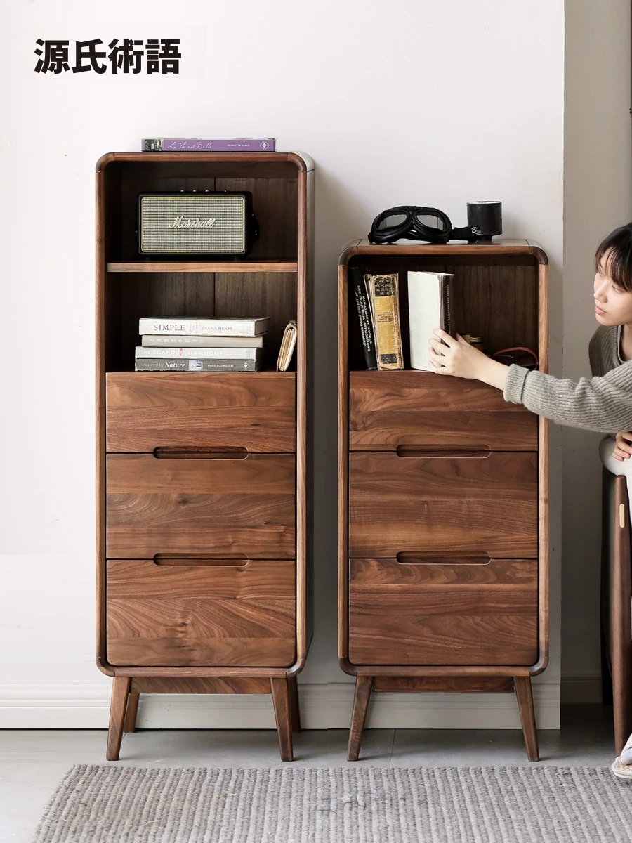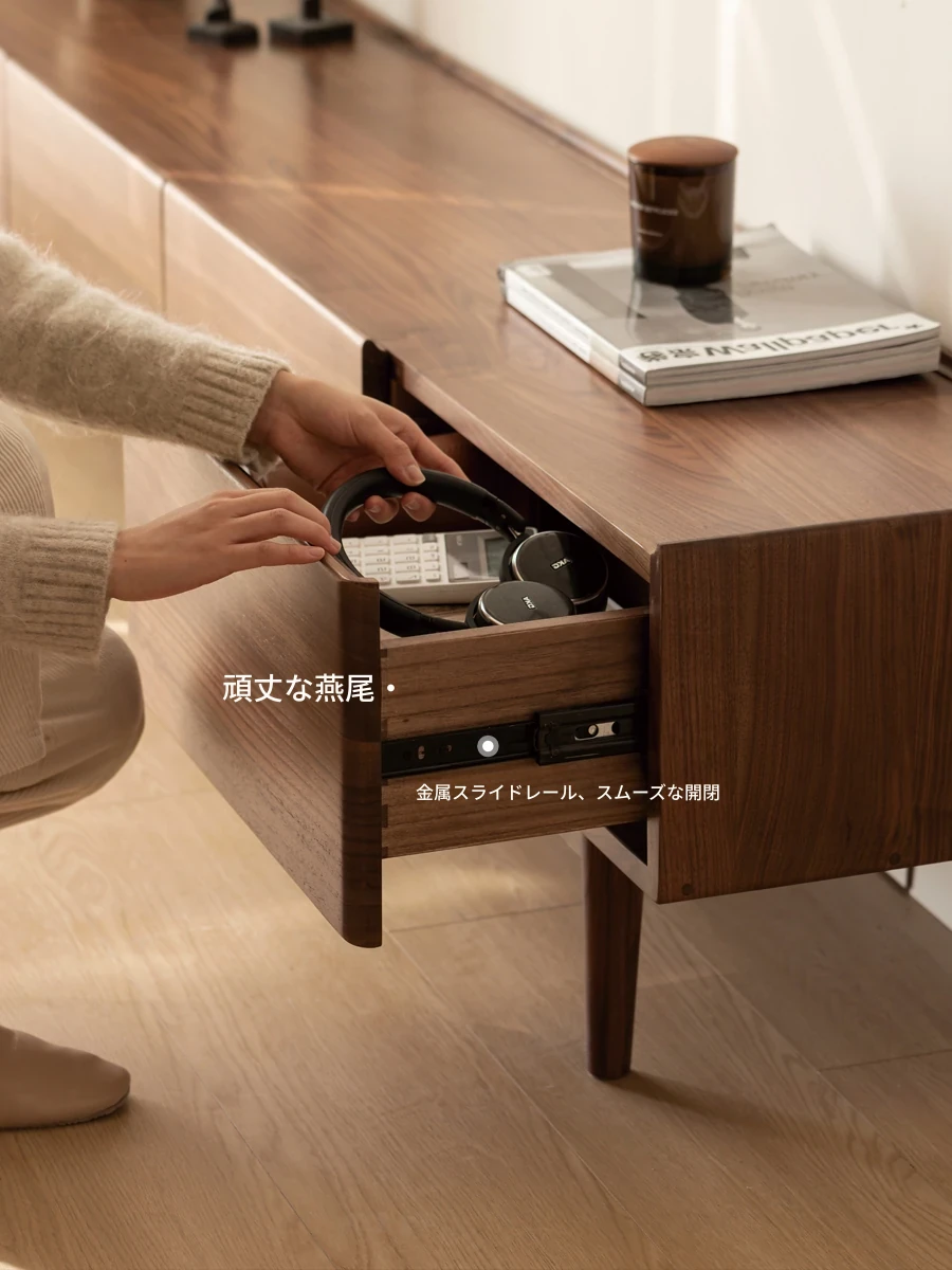 源氏木语の無垢材テレビキャビネット - ブラックウオールナットのモダンなサイドキャビネット!シンプルでスタイリッシュな収納スペース、リビングルームにぴったりな狭いキャビネットで、インテリアを引き立てます。