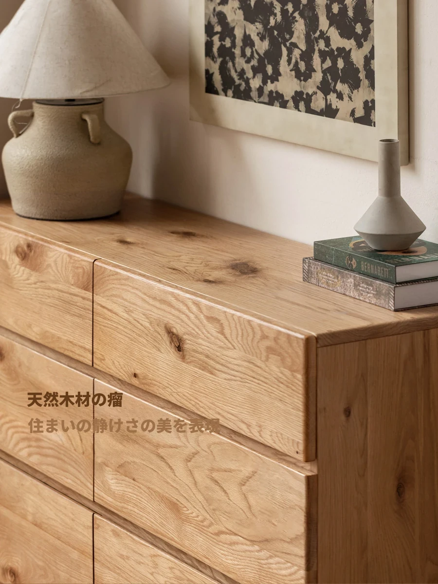 源氏木语の無垢材サイドボード - モダンシンプルなデザインで収納力抜群!おしゃれな壁際収納や家庭用のティーキャビネットとして最適。あなたの生活空間を彩る一品です!