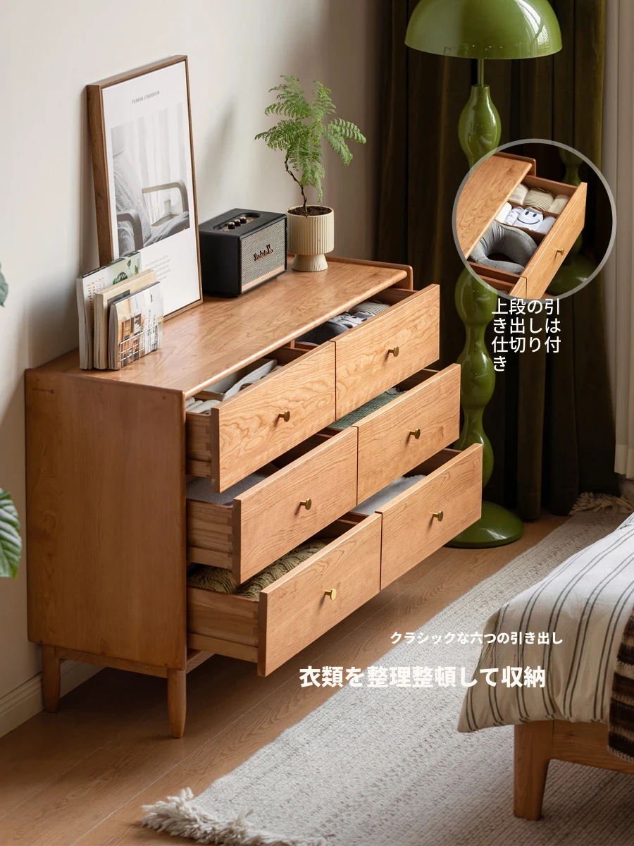 源氏木語の実木製6段チェスト - モダンでシンプルなデザイン、チェリーウッド使用の収納力抜群の北欧スタイルの寝室用ドロワーチェスト。お部屋を洗練された雰囲気に演出します!