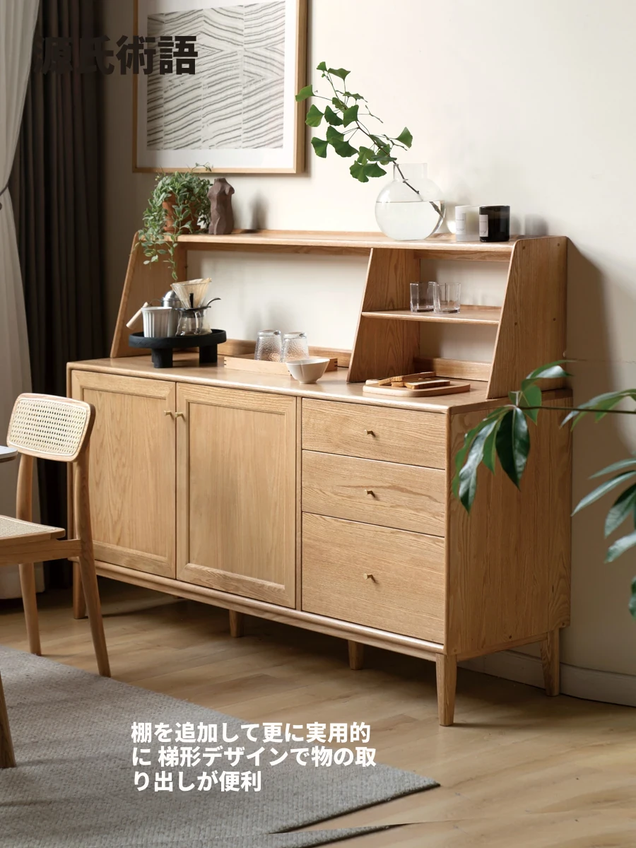 源氏木语の無垢材サイドボード - シンプルでスタイリッシュな北欧デザイン、収納力抜群のリビング&ダイニング用キャビネット。テーブルウェアやお茶のセットを美しく収納できる、理想のインテリアアイテム!