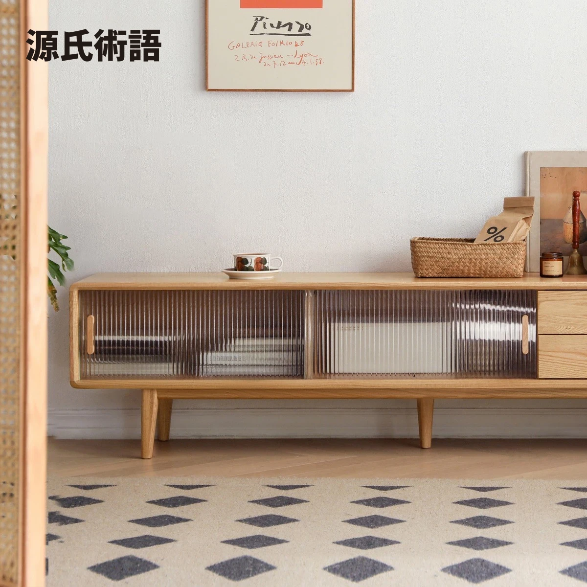源氏木语オーク無垢材テレビ台|現代風リビングにぴったり!北欧スタイルの収納力抜群な小型テーブルセットで、おしゃれで機能的な空間を実現!