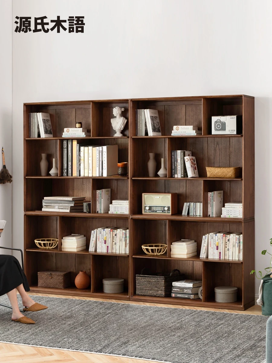 源氏木語の無垢材製カウンターブックシェルフ - シンプルでスタイリッシュな書斎向け, 家庭用の壁寄せ収納ラック, 高級オーク材のフロアキャビネットで、洗練された空間を演出します。
