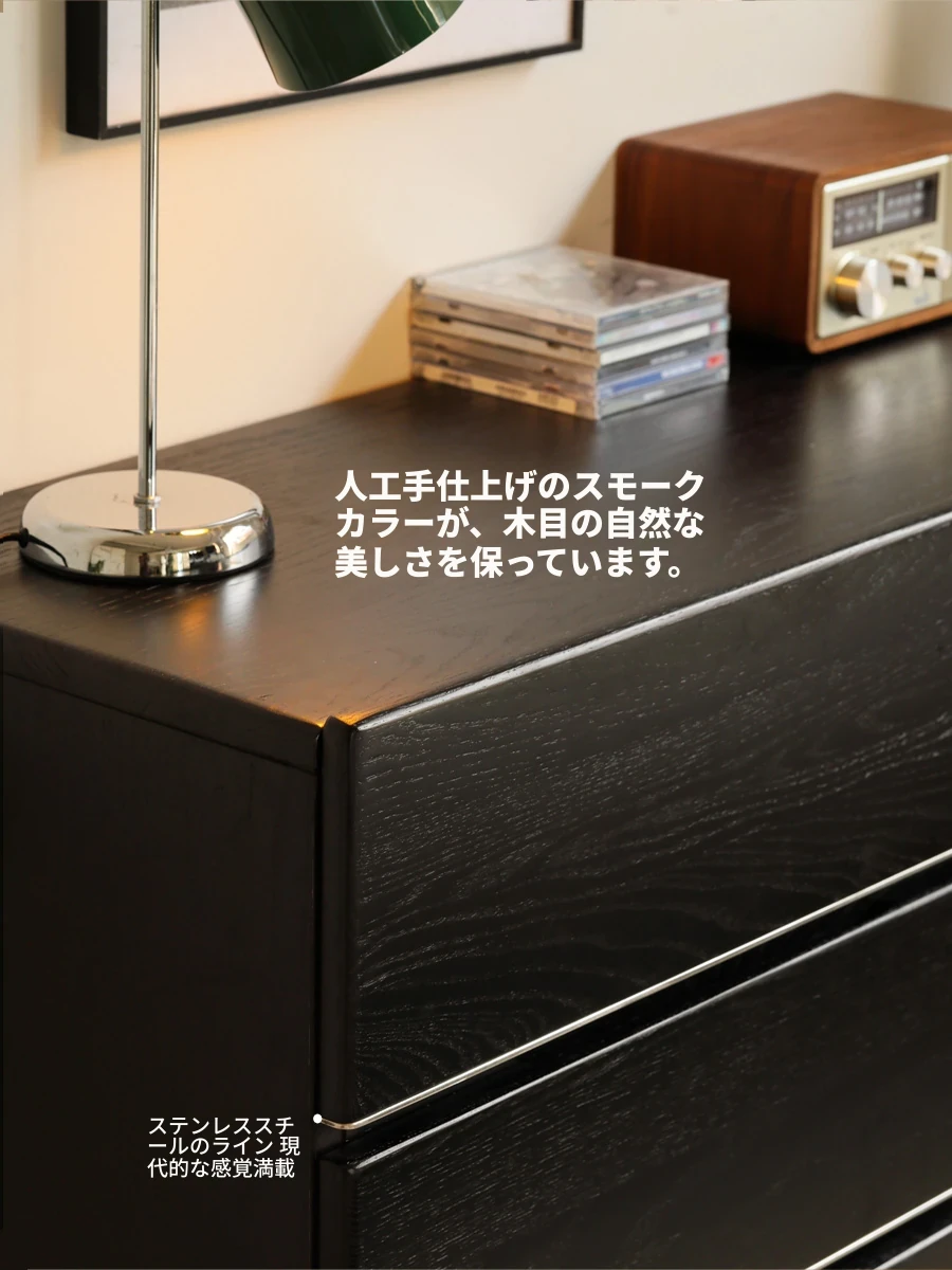 源氏木語の天然木製ドレッサー - インダストリアルスタイルの引き出しキャビネット、バウハウスデザインのブラックストレージキャビネット、リビングルームや寝室に最適な収納家具!