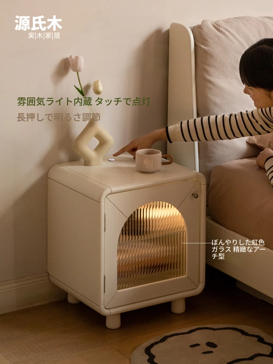 源氏木语 全実木製 ベッドサイドテーブル 家庭用 寝室に最適 シンプルモダンなクリームホワイトの収納キャビネット 抜群の収納力でお部屋をスッキリ整理!