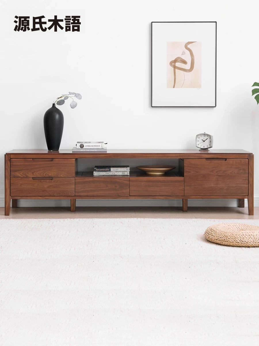 源氏木语モダンシンプル無垢材テレビボード、ブラックウォルナット仕上げの小型収納キャビネット!新中式デザインで洗練されたリビング空間を演出します。おしゃれな収納力でスマートな生活をサポート!