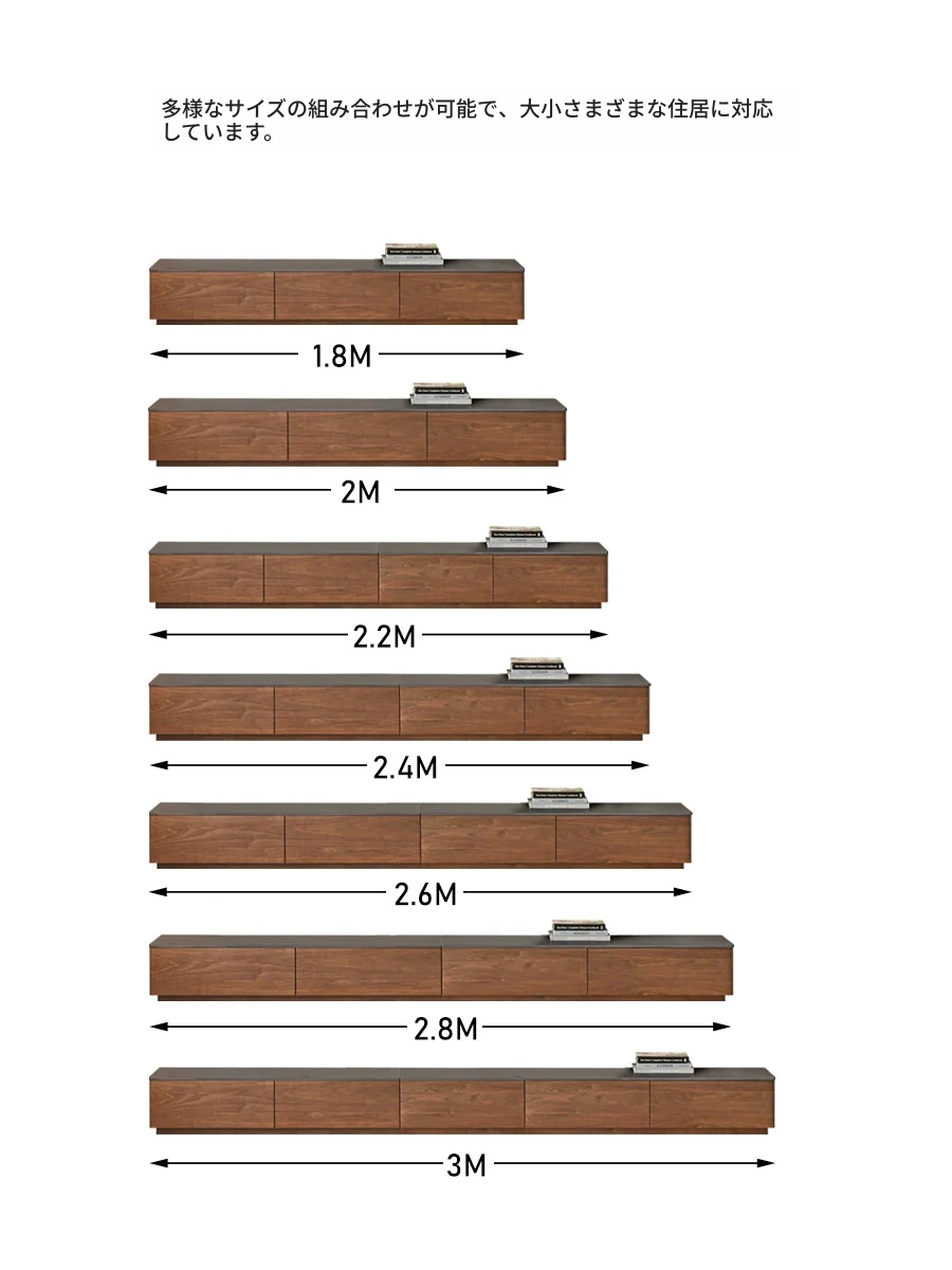 源氏木語の無垢材テレビボード - モダンでシンプルな収納キャビネット、リビングにぴったりなオーク製のロースタイル!おしゃれな岩板天板でインテリアを引き立て、実用性とデザイン性を両立。