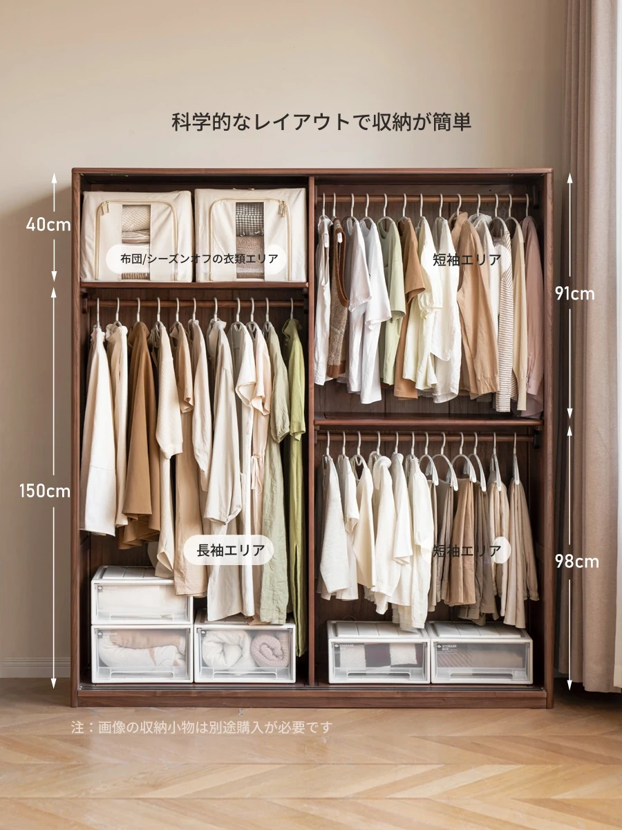 ゲンジ木語 全実木製 スライドドアクローゼット ブラックウォールナット 幅を取らない省スペース設計 おしゃれな家庭用寝室収納に最適!小型住居にもぴったりな収納力を実現!