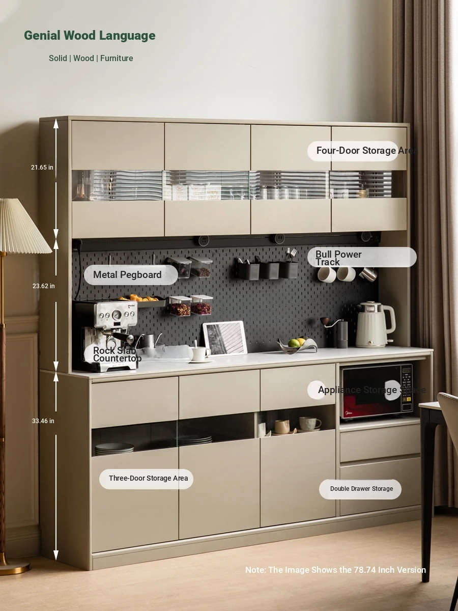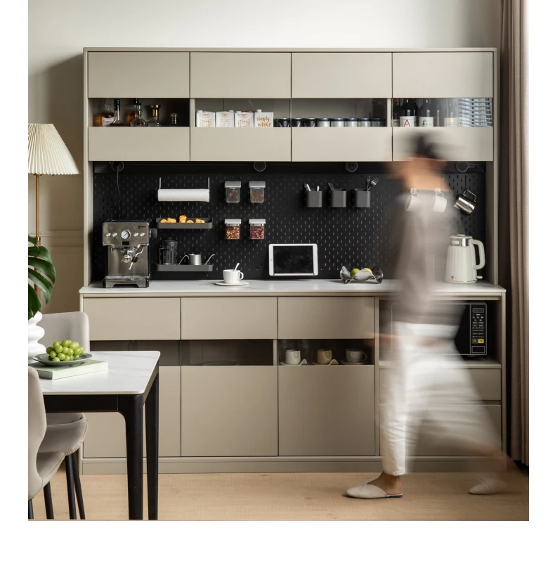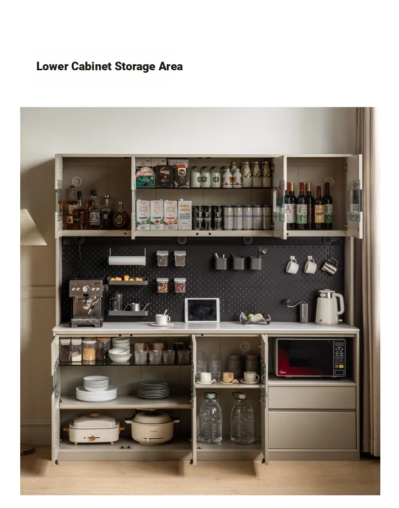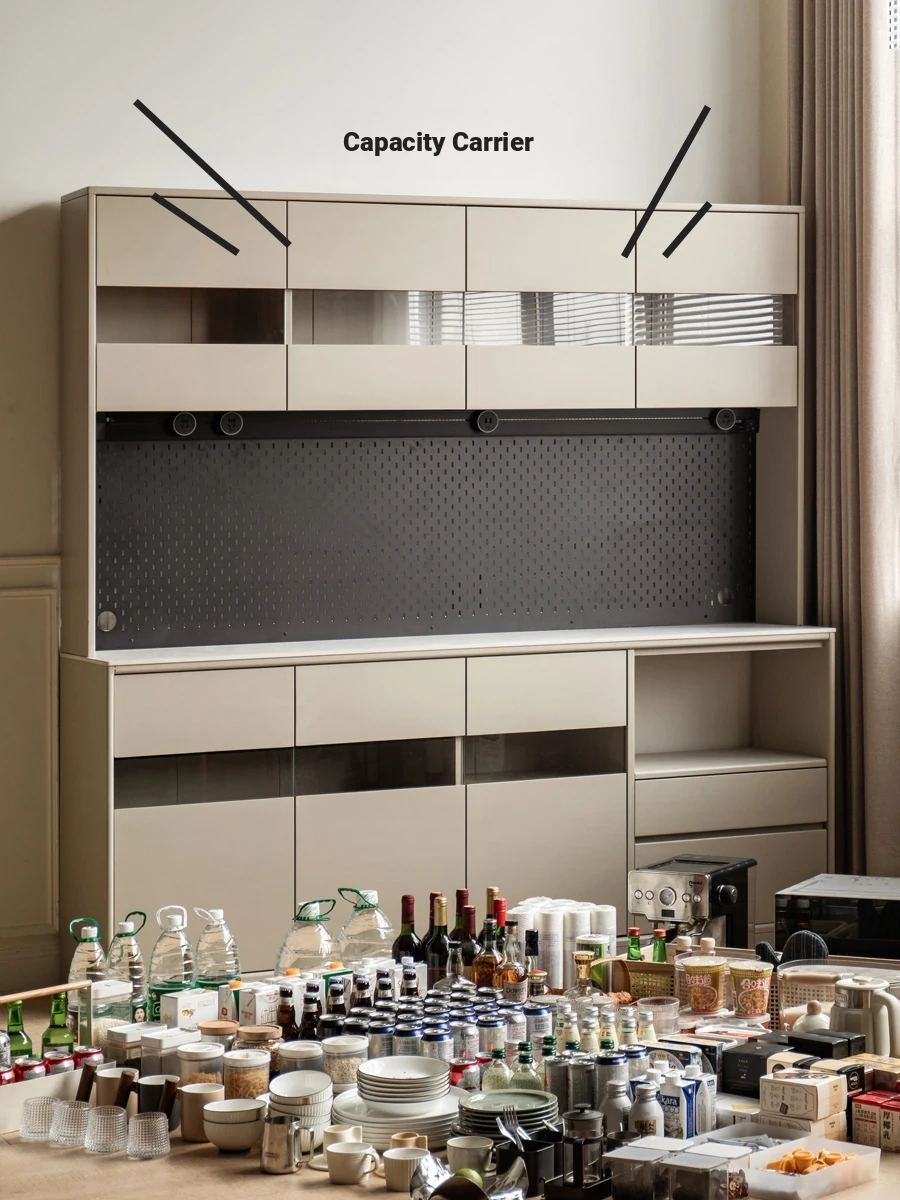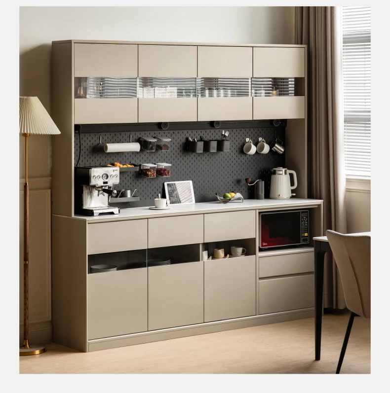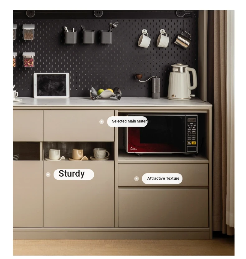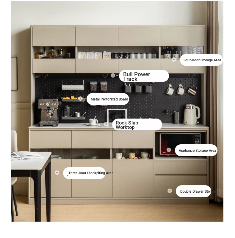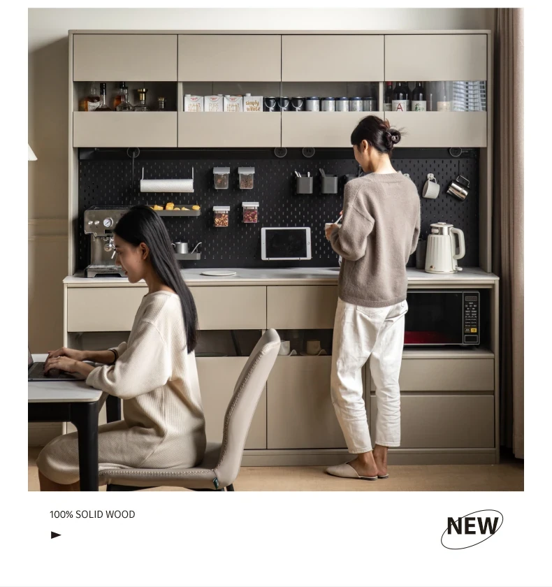 Genji Mu Yu Modern High-End Rock Panel Sideboard with Solid Wood Wine Cabinet and Pegboard, Elegant Wall-Mounted Storage Solution for Tea and Snacks