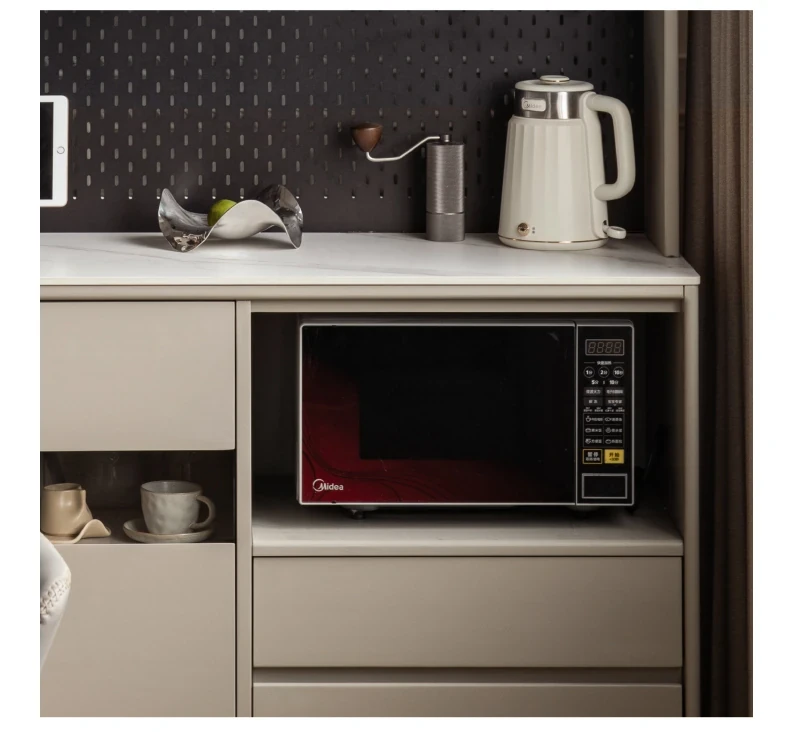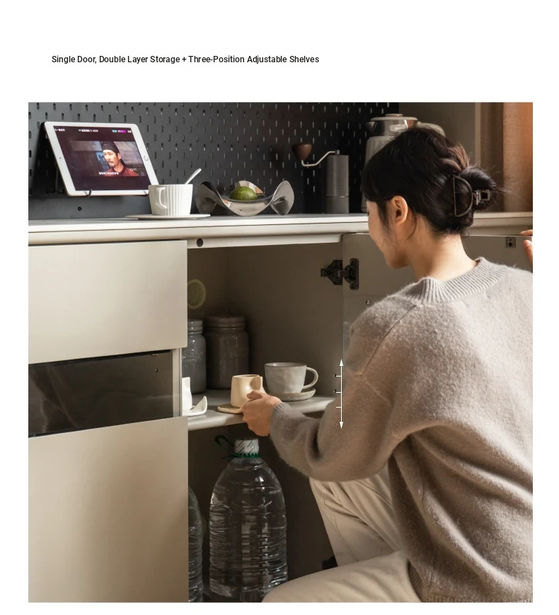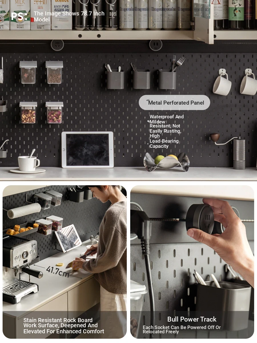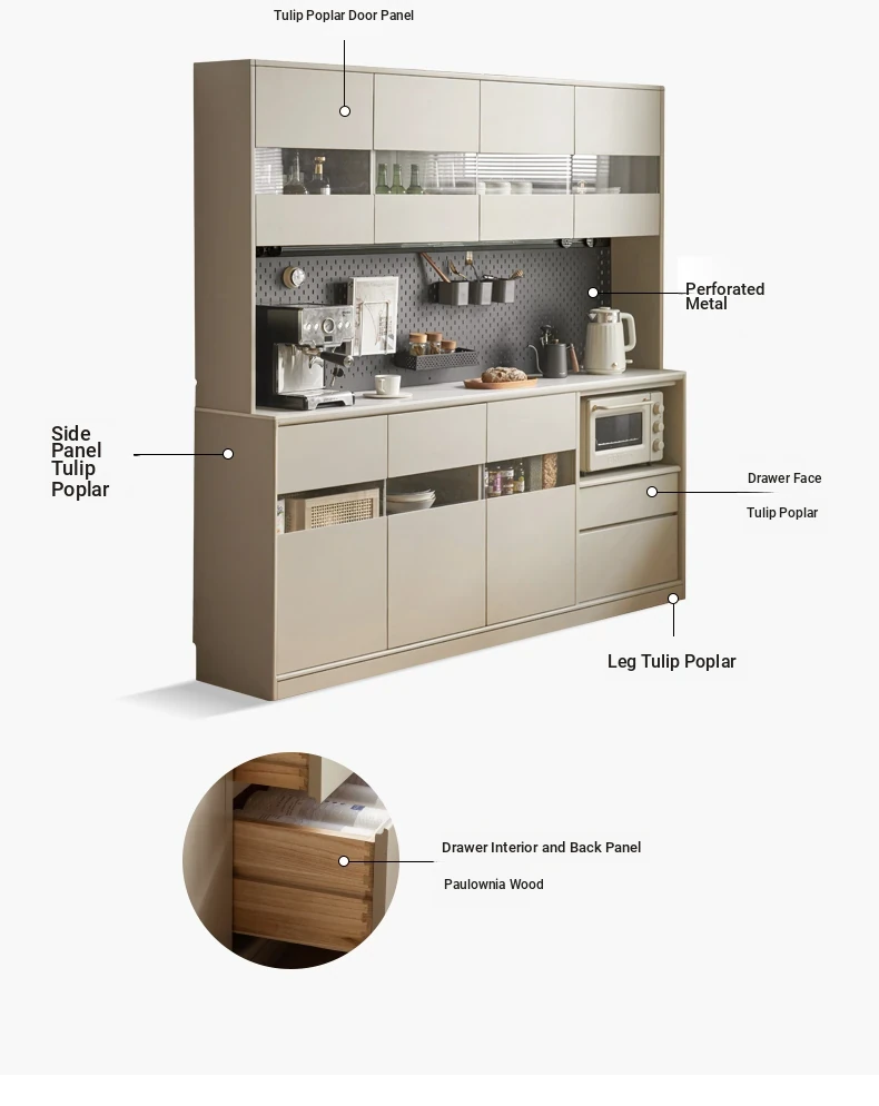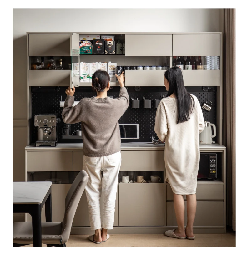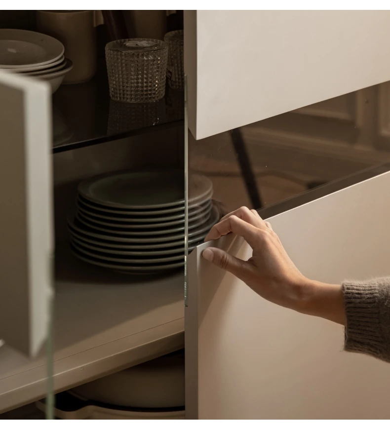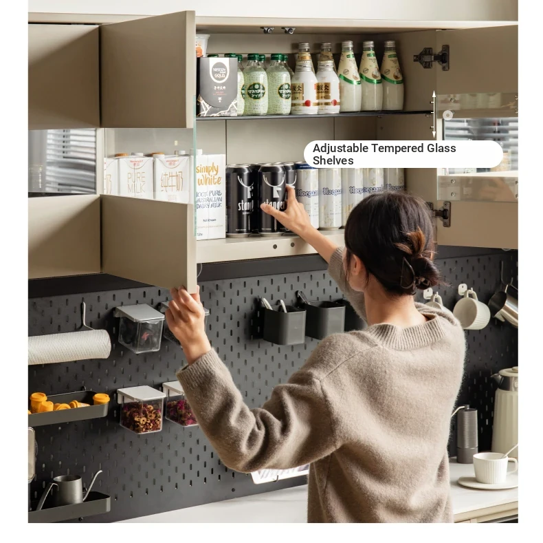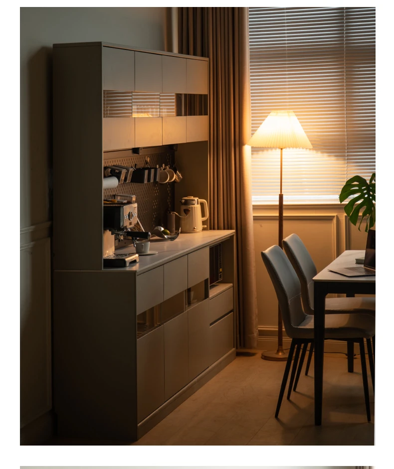 Genji Mu Yu Modern High-End Rock Panel Sideboard with Solid Wood Wine Cabinet and Pegboard, Elegant Wall-Mounted Storage Solution for Tea and Snacks