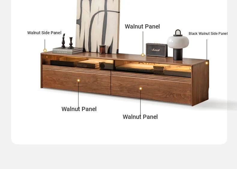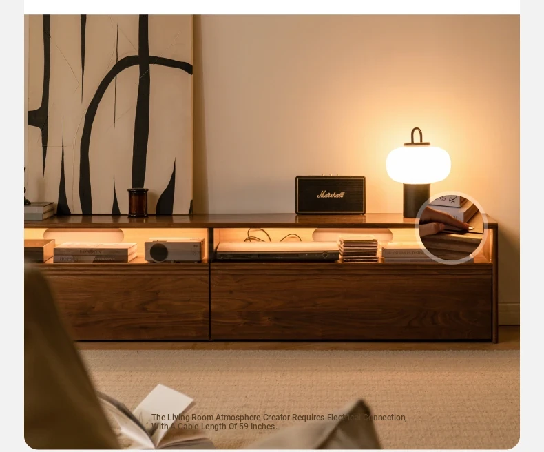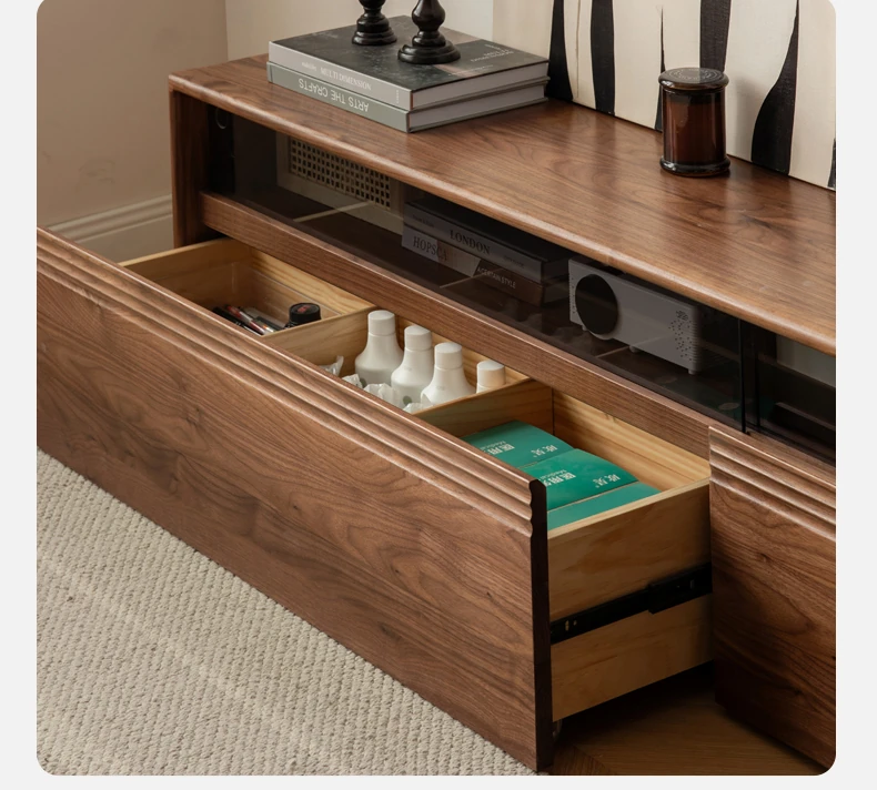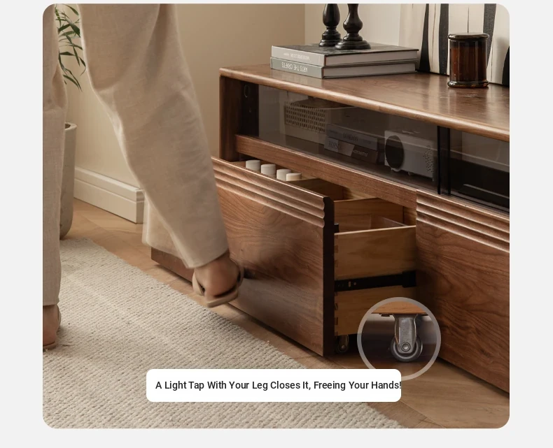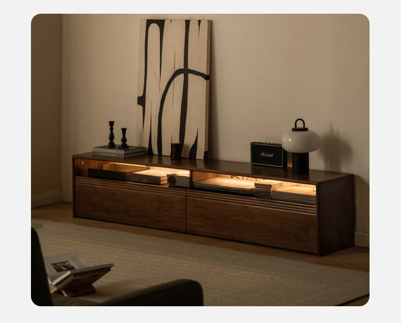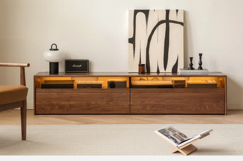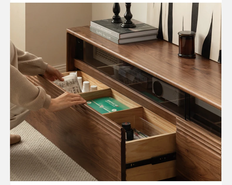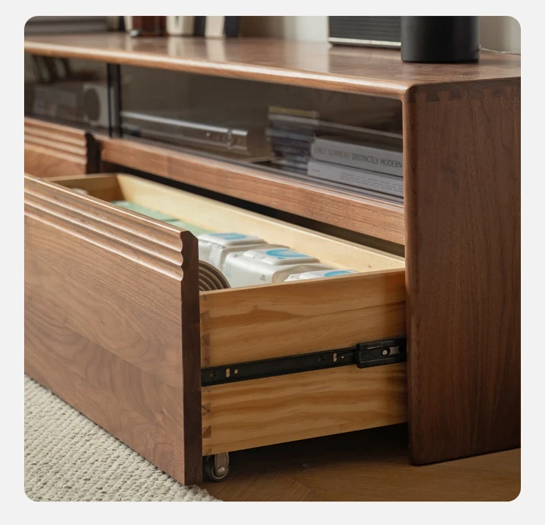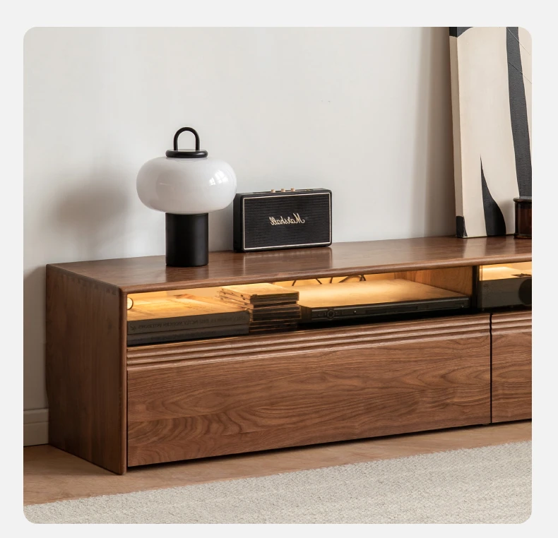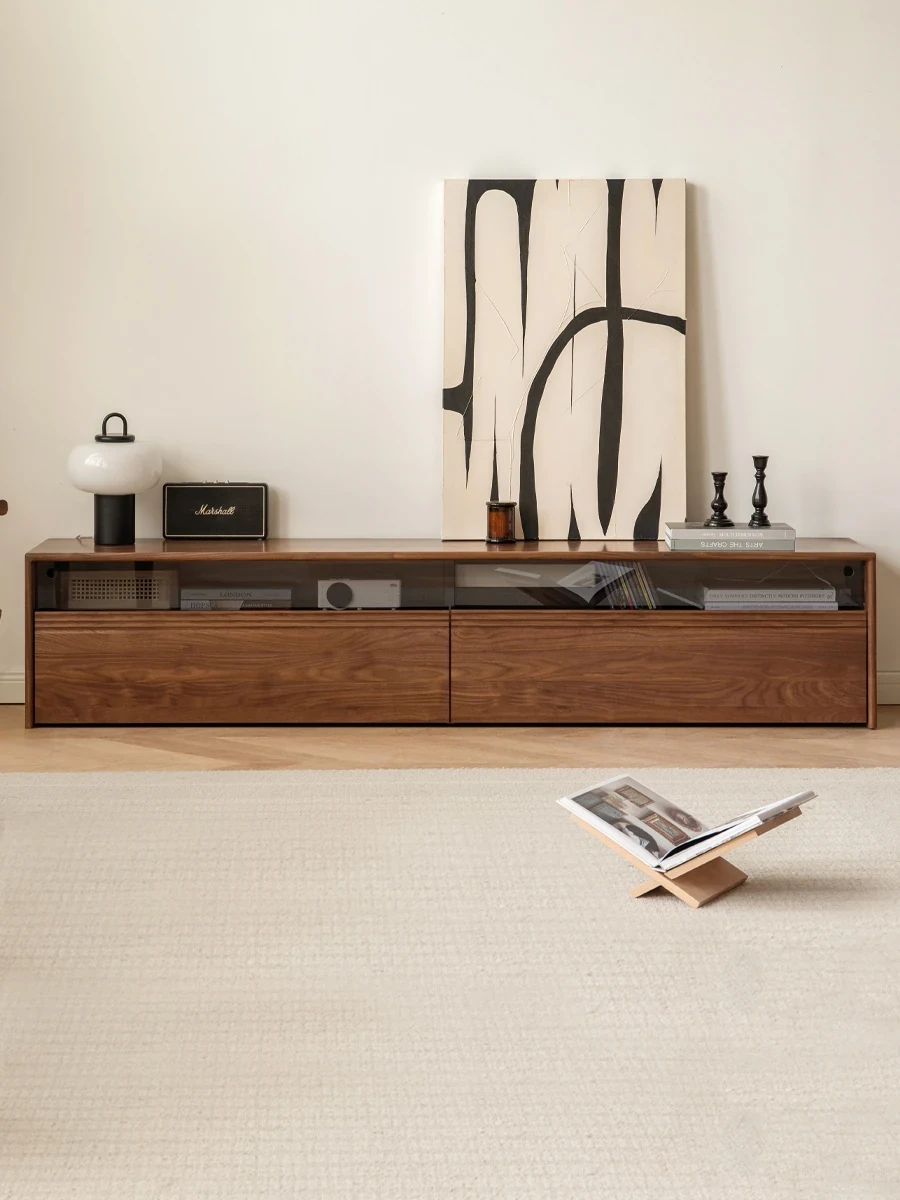 Genji Mu Yu Solid Wood TV Cabinet - Modern Minimalist Storage Unit for Home, Black Walnut Floor Cabinet Perfect for Living Room Organization