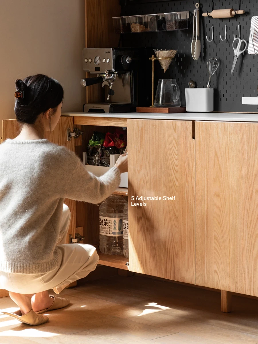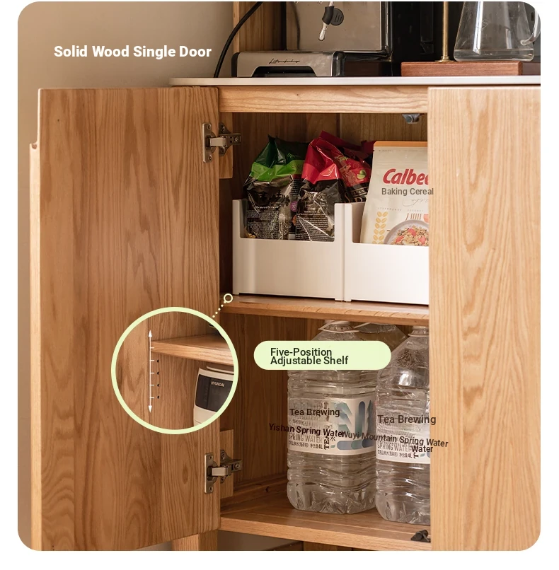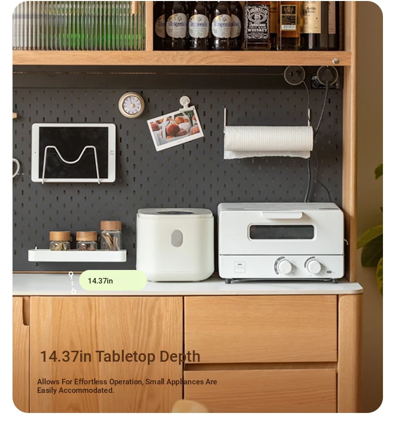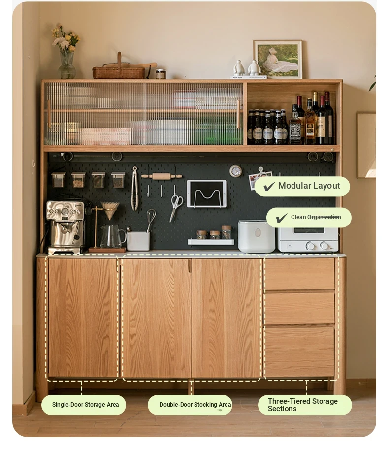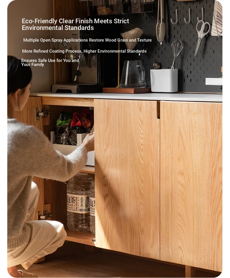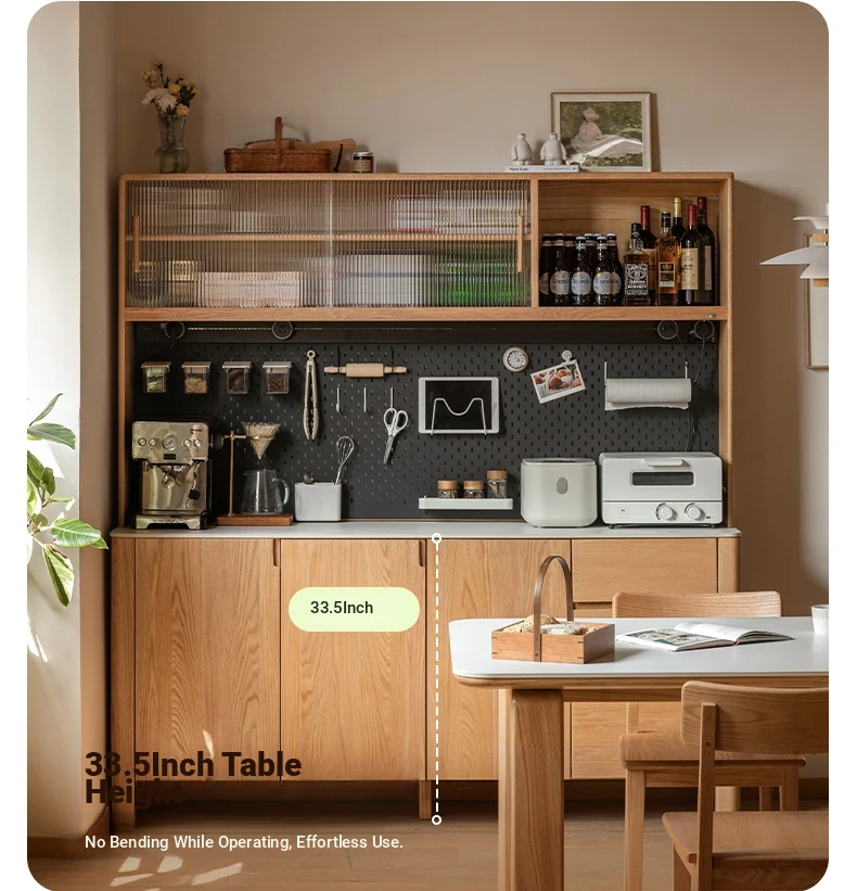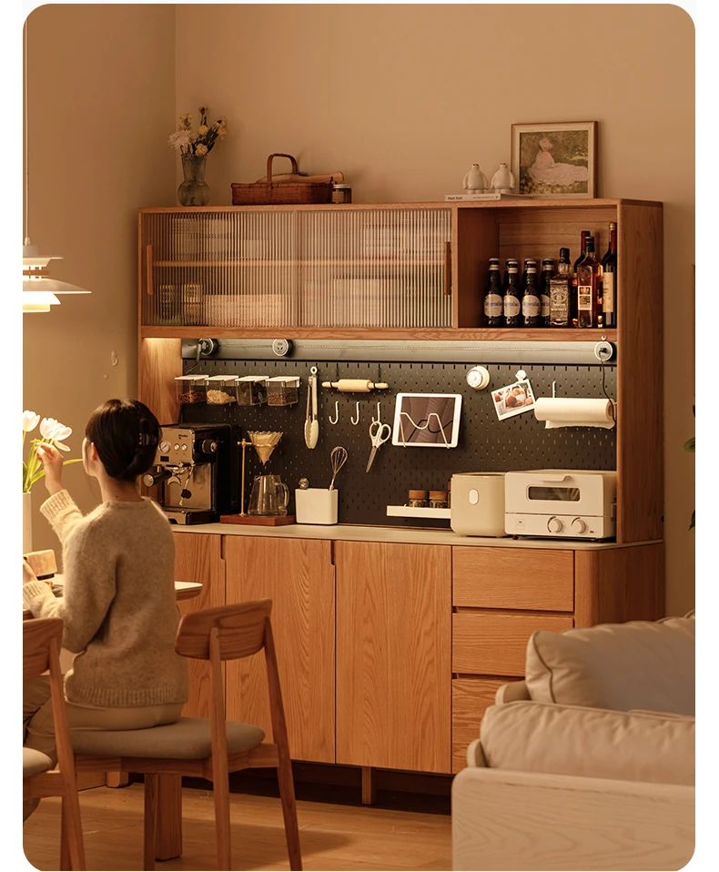 Genji MuYu Solid Wood Rock Plate Sideboard - Modern Minimalist High Cabinet with Pegboard, Tea and Coffee Storage for Home, Oak Organizer.