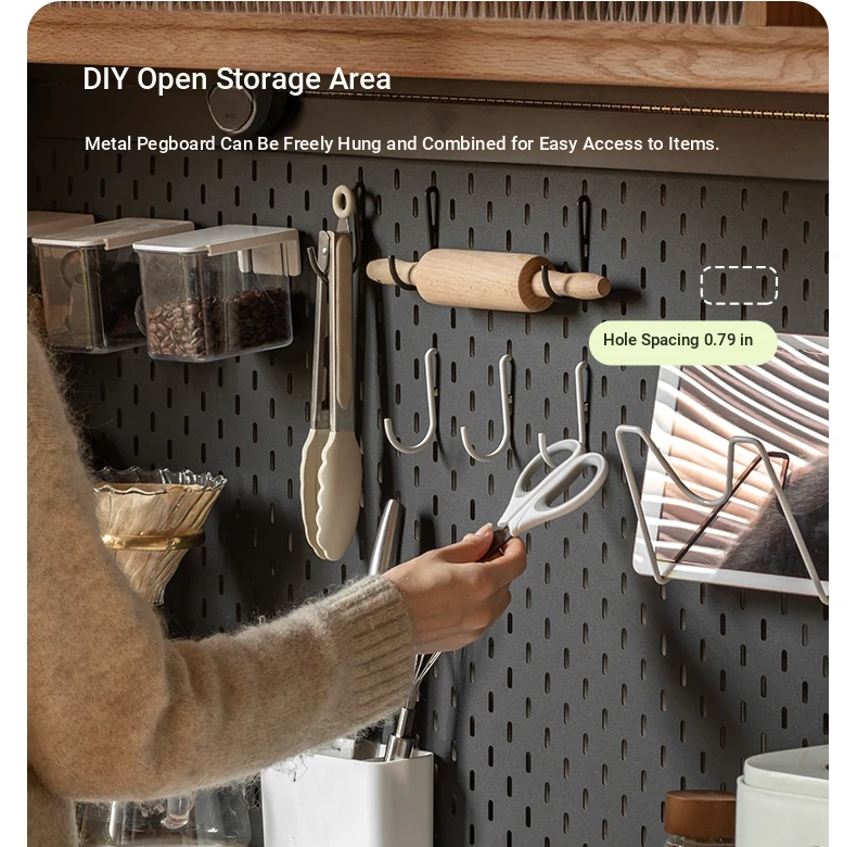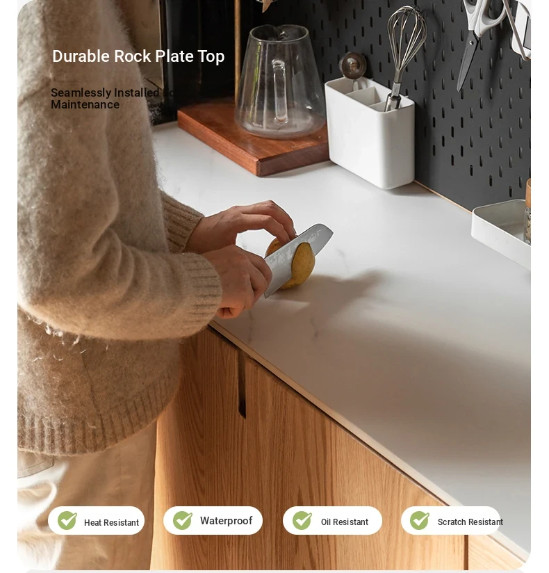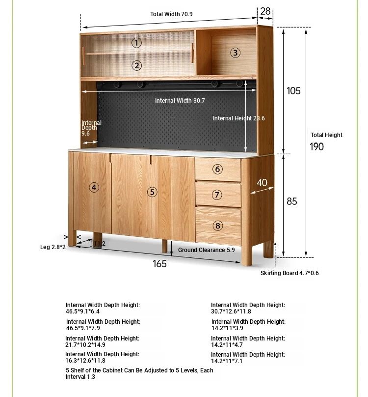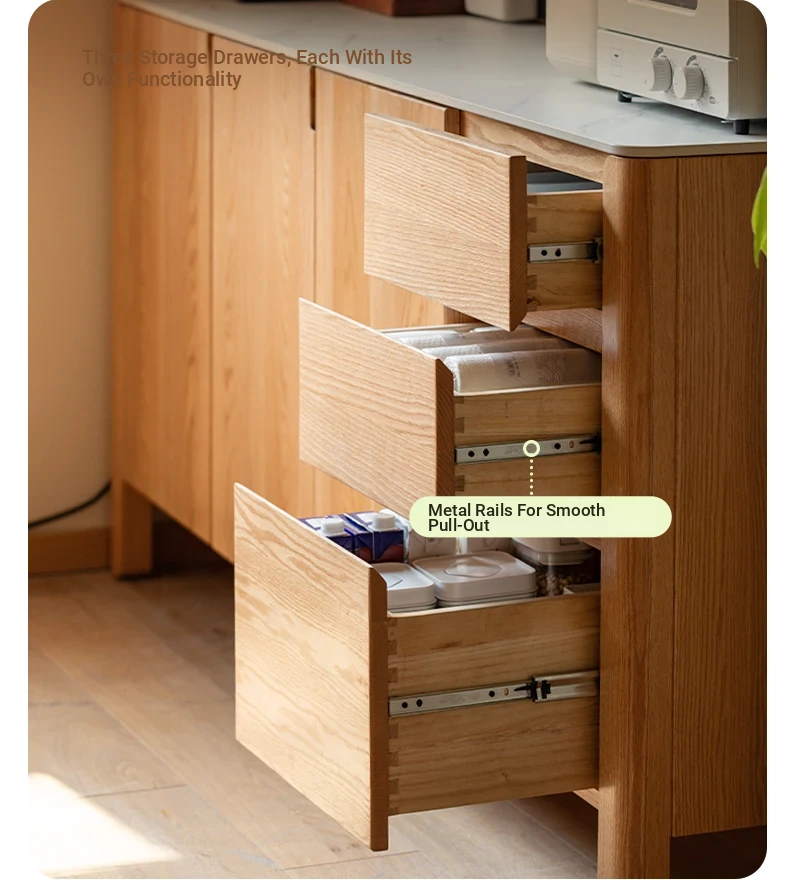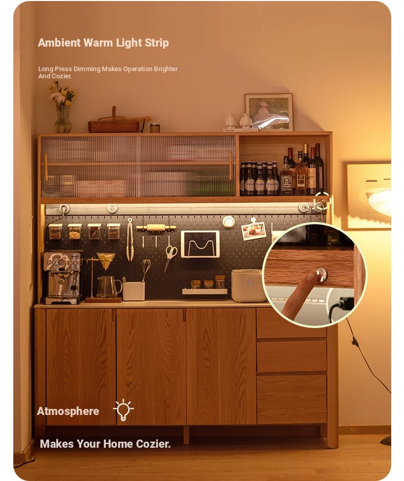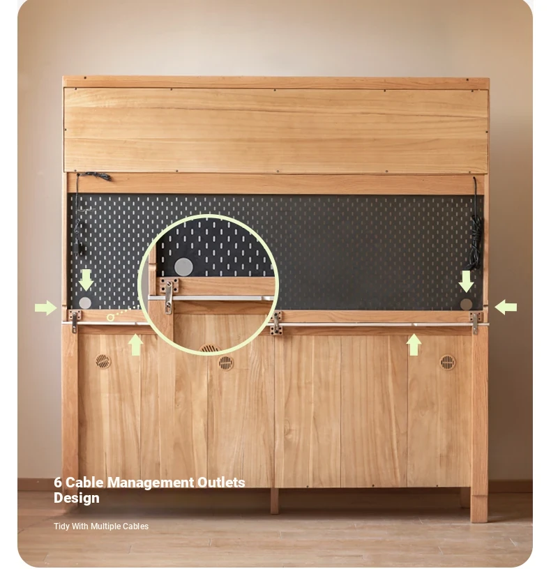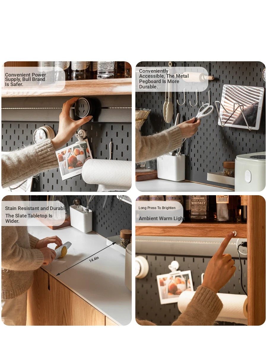 Genji MuYu Solid Wood Rock Plate Sideboard - Modern Minimalist High Cabinet with Pegboard, Tea and Coffee Storage for Home, Oak Organizer.