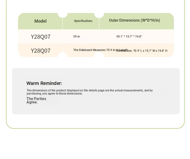 59.06 in sideboard + shelf (59.06in*15.75in*74.80in)Y28Q07