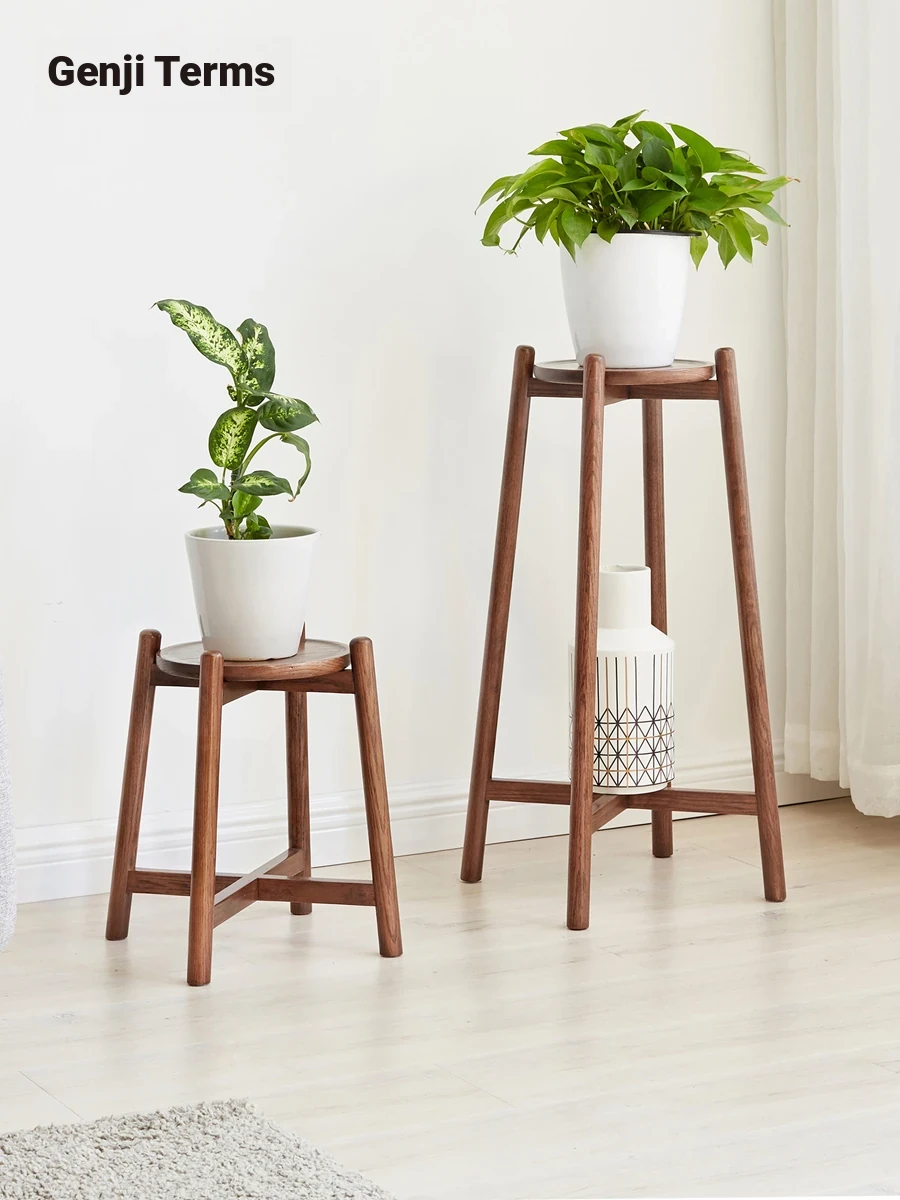 Genji Muyu Solid Wood Succulent Plant Stand - Stylish Indoor Floor Rack for Balcony or Living Room, Perfect for Potted Plants and Greenery Display