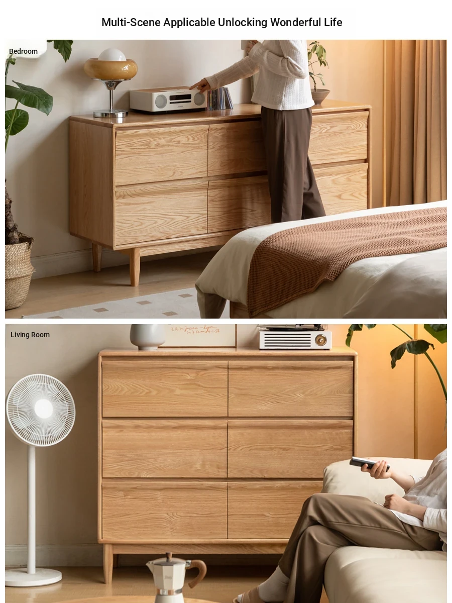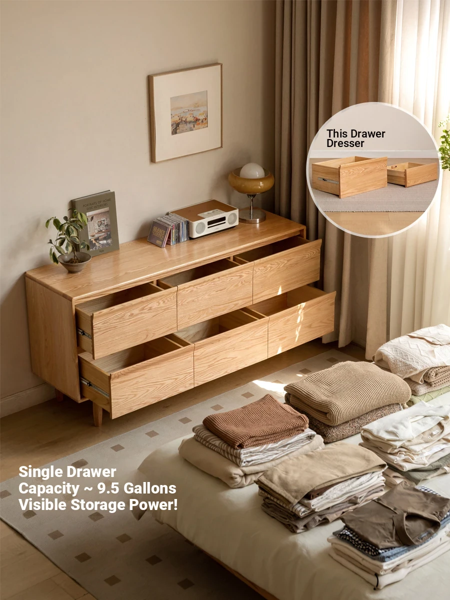 Genji Solid Wood Chest of Drawers - Stylish Bedroom Storage with Six Drawers, Elevated Design in Premium Oak Finish, Perfect for Bedside or Living Room Organization.