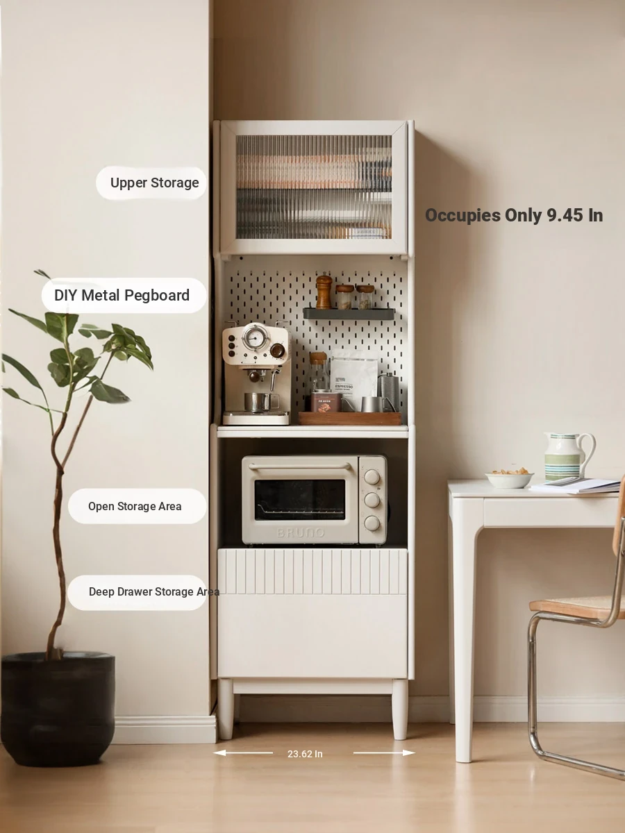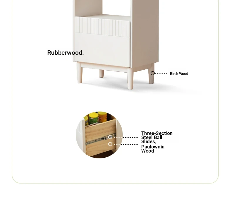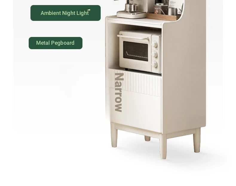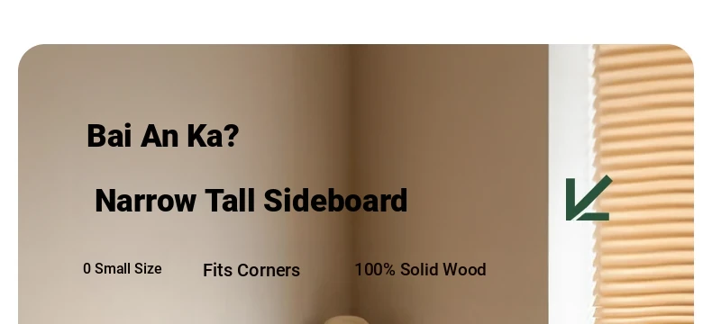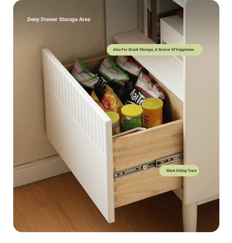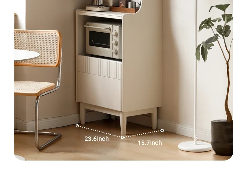 Genji Wood Natural Solid Wood Sideboard - White Narrow Cabinet for Tea and Snacks - Creamy Aesthetic Corner Storage Solution for Small Spaces