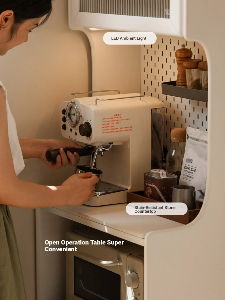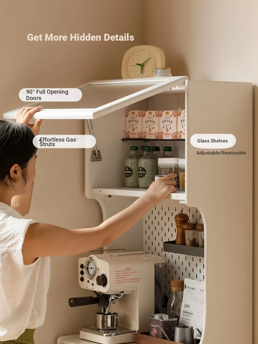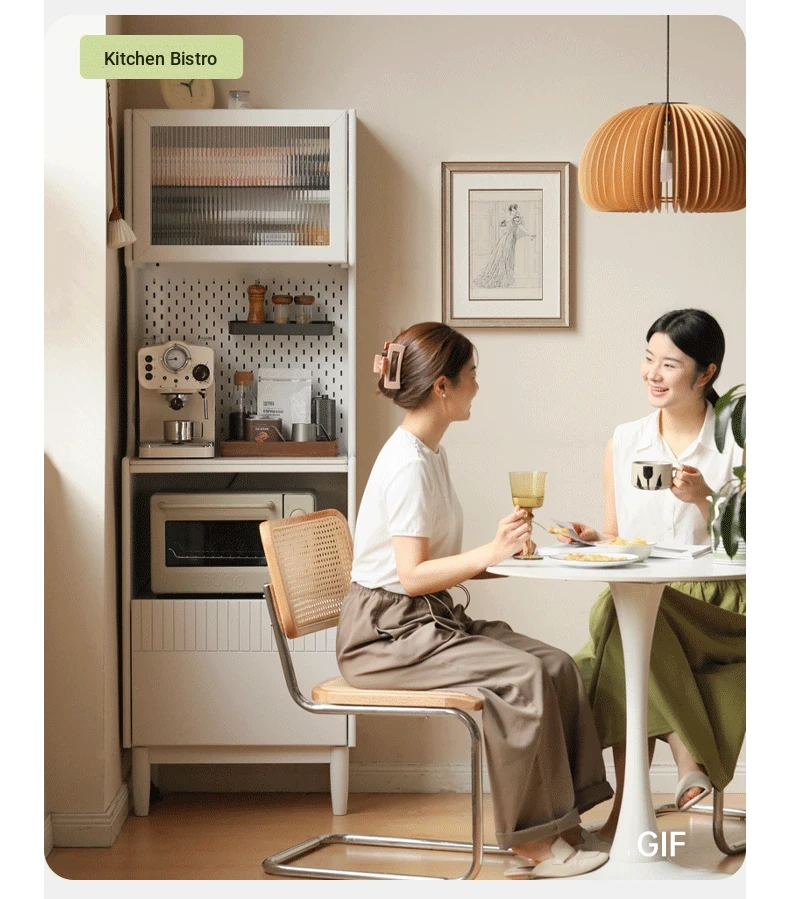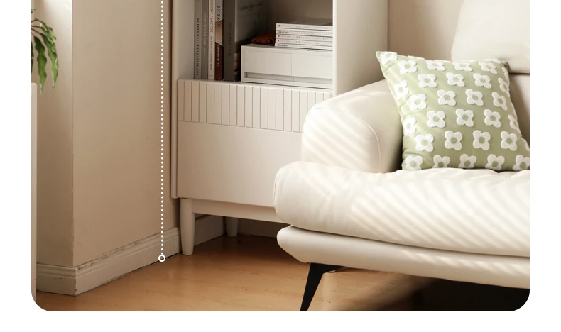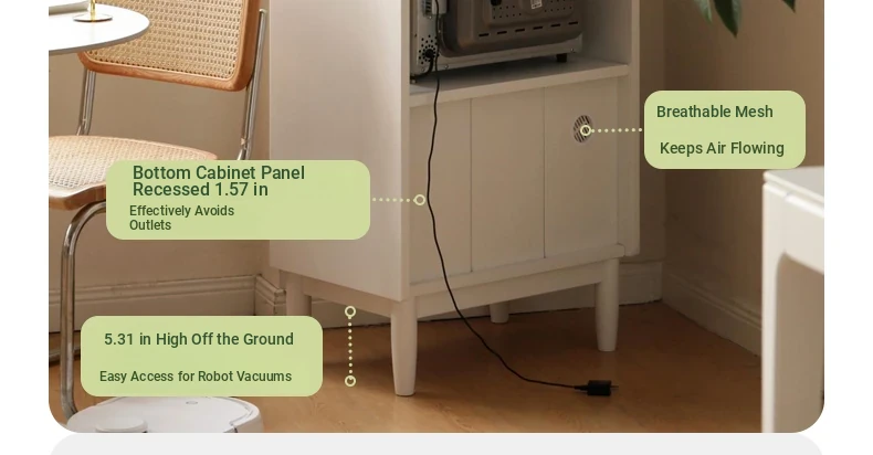 Genji Wood Natural Solid Wood Sideboard - White Narrow Cabinet for Tea and Snacks - Creamy Aesthetic Corner Storage Solution for Small Spaces