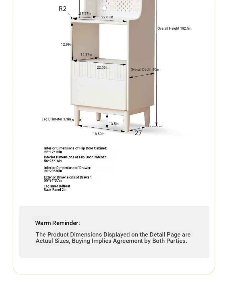 (Rubber wood warm white) 23.62 in narrow high sideboard (23.62in*71.85in*15.75in) Y246Q04