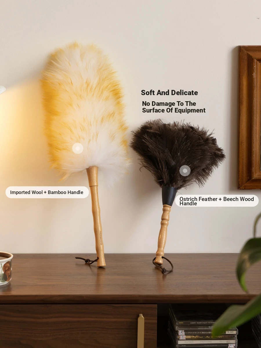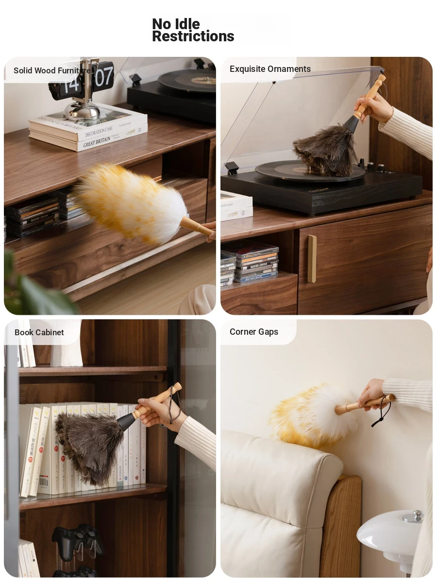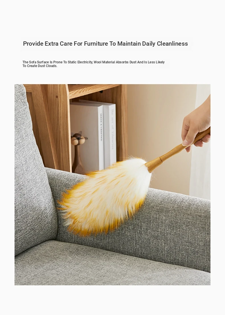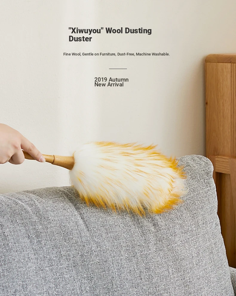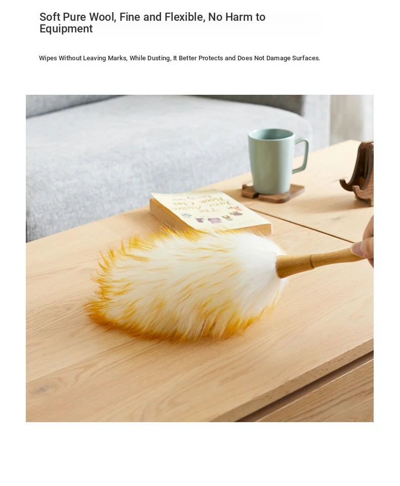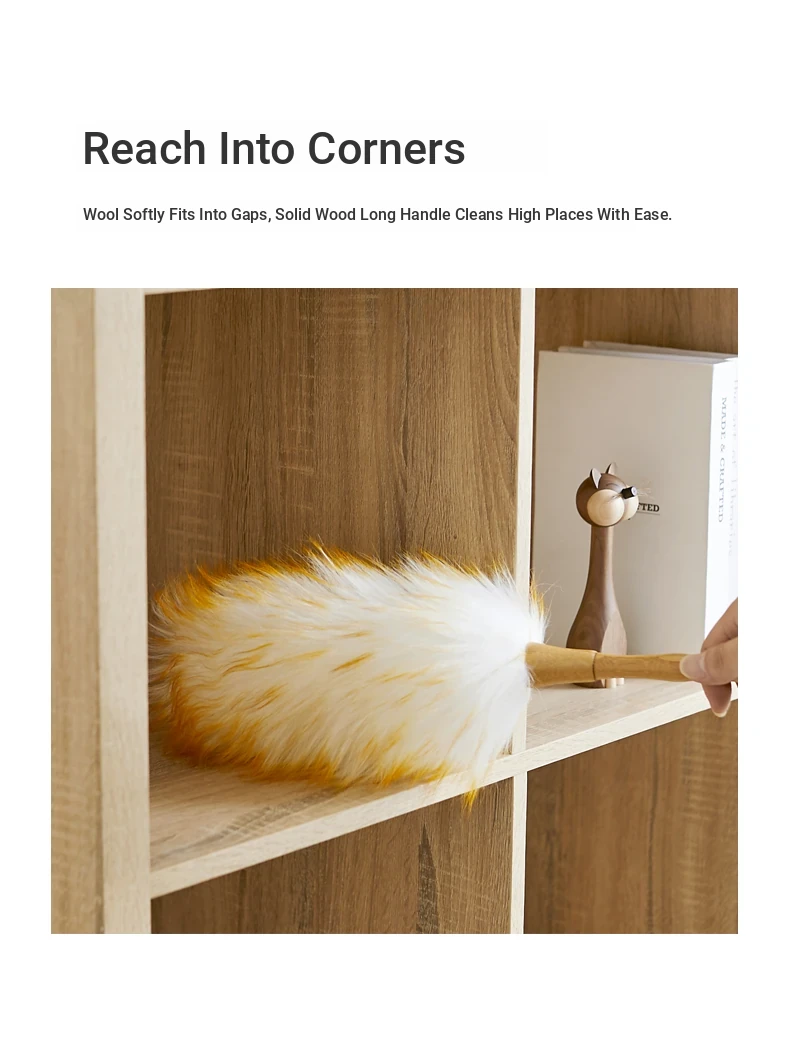 Genji Wooden Art Home Cleaning Wool Duster - Durable, Lint-Free, and Easy to Handle with Sturdy Wooden Handle for Efficient Dusting and Household Cleaning