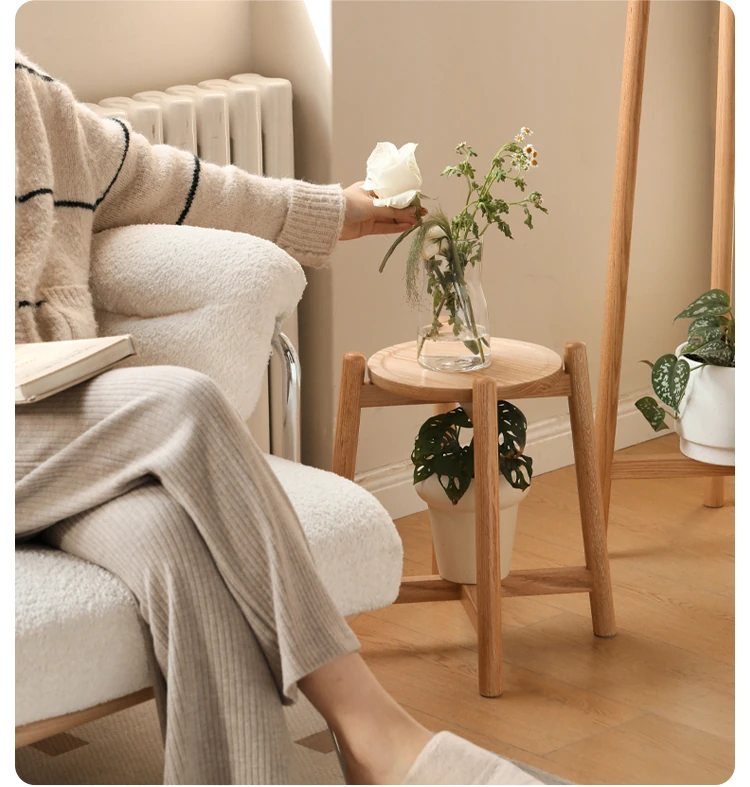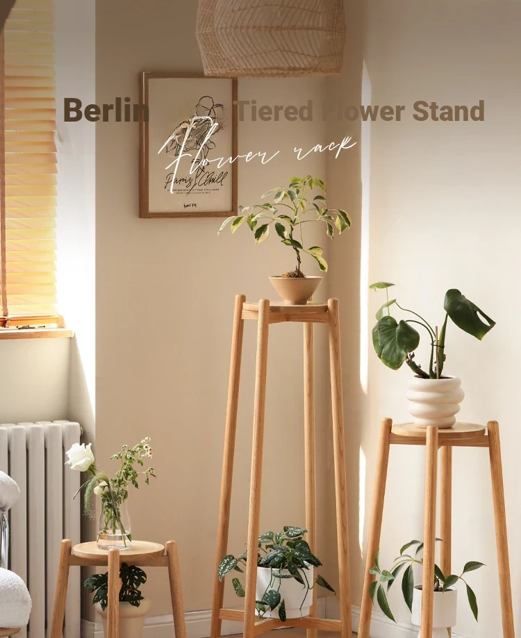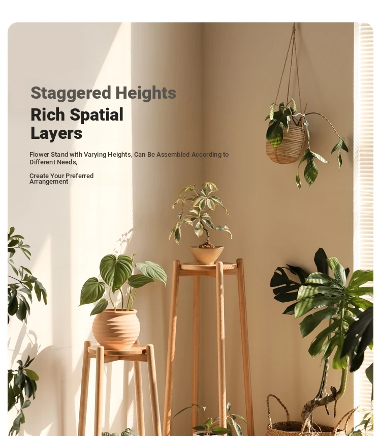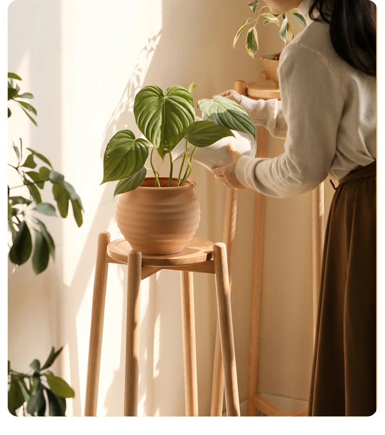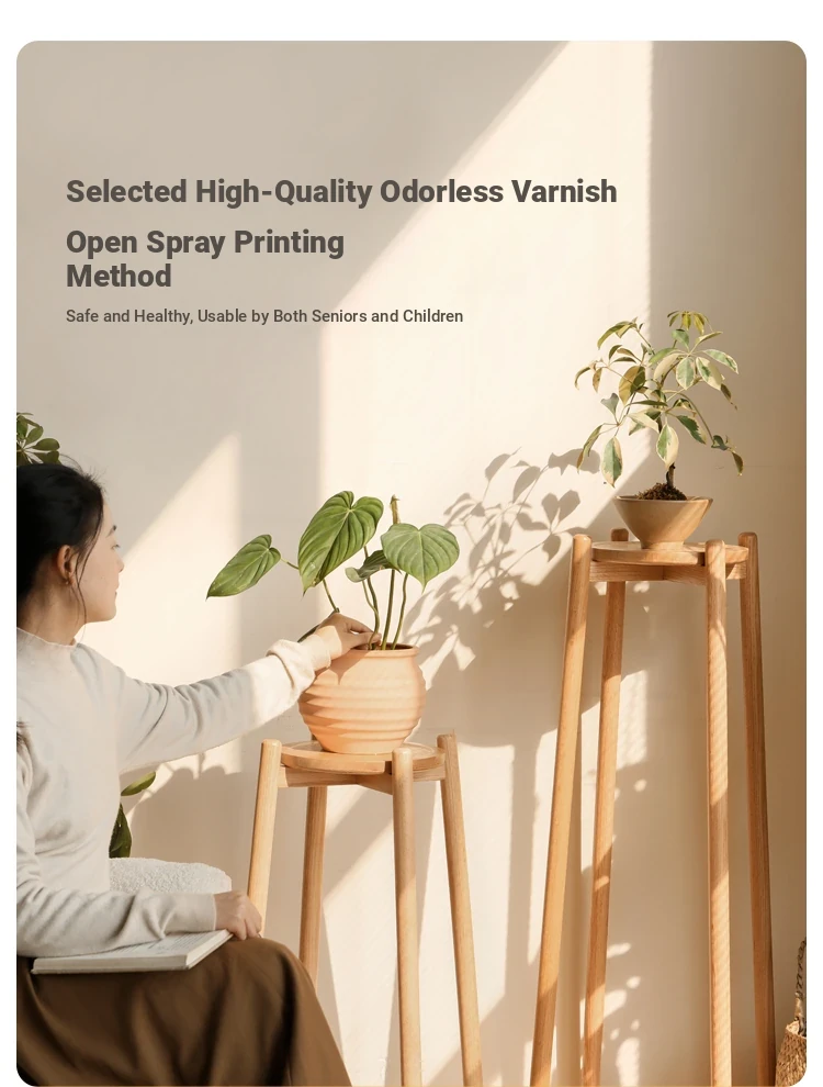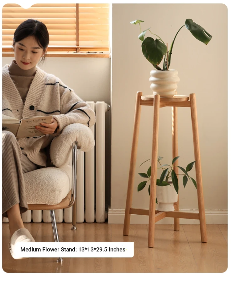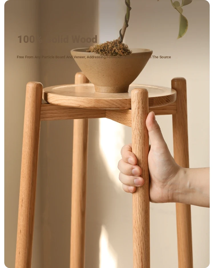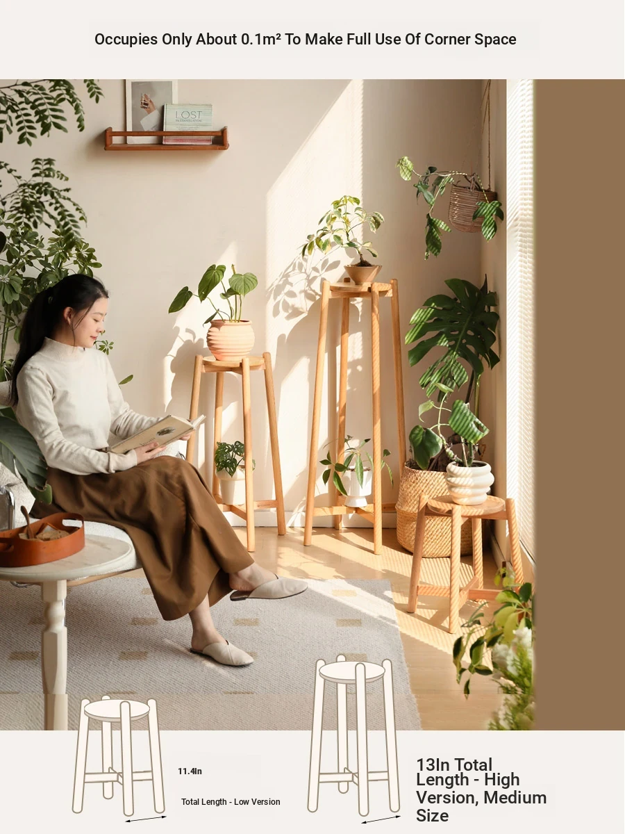 Genji Wooden Solid Wood Flower Stand - Floor-Standing Plant Rack for Balcony & Living Room, Ideal for Potted Plants and Climbing Vines like Pothos