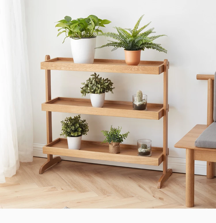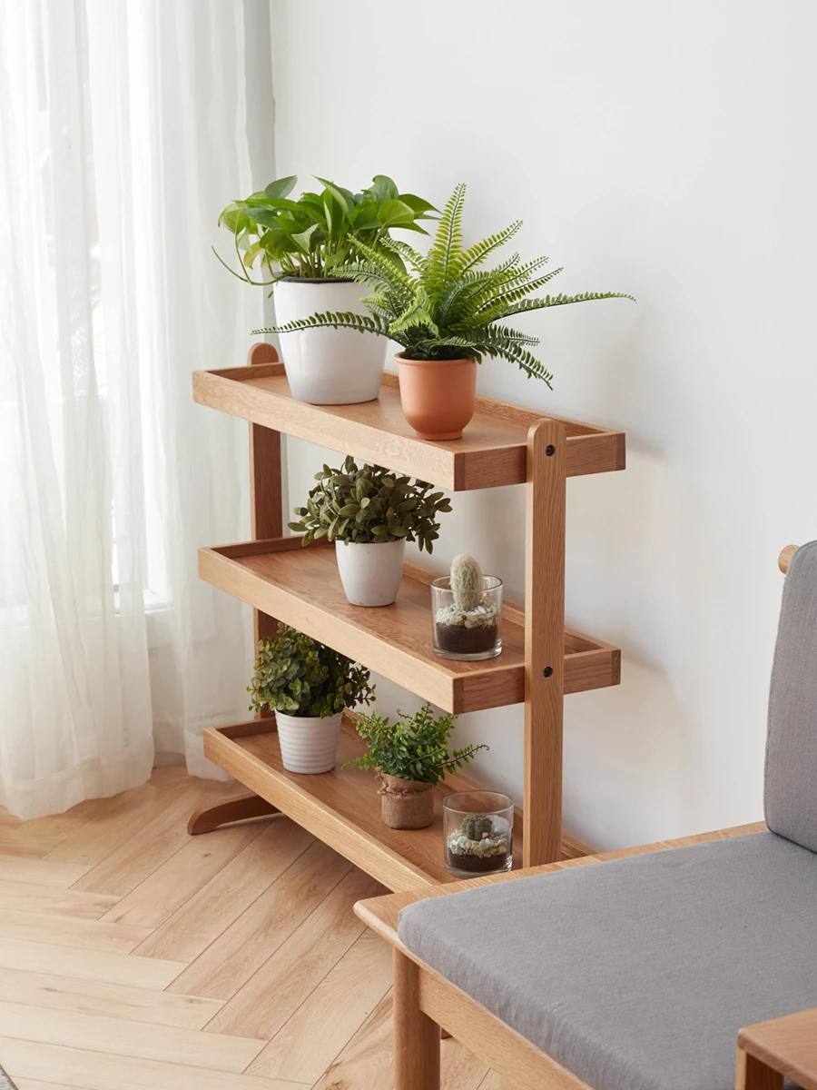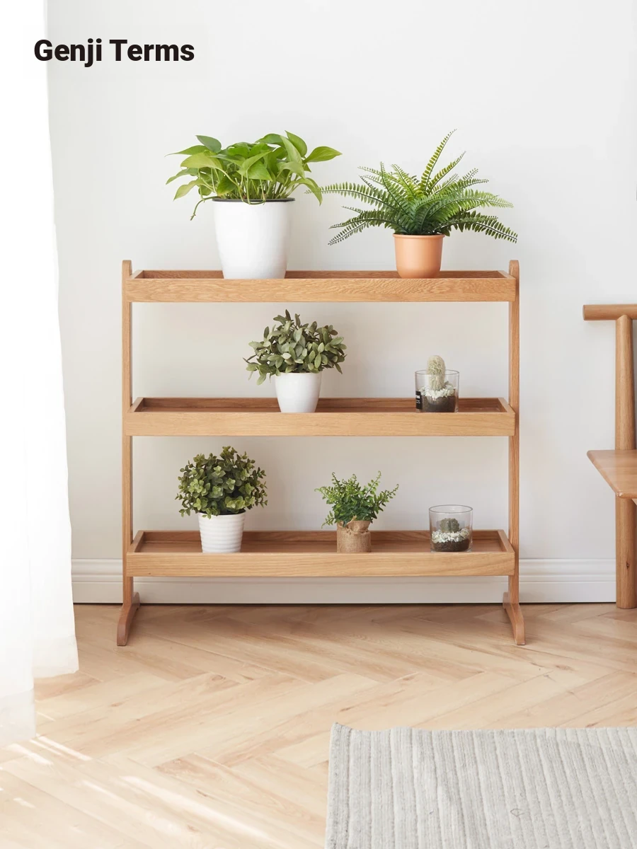 Genji Wooden Solid Wood Flower Stand - Stylish Floor Plant Rack for Balcony, Living Room Side Table, and Outdoor Garden Planter Display. Perfect for Home Décor!
