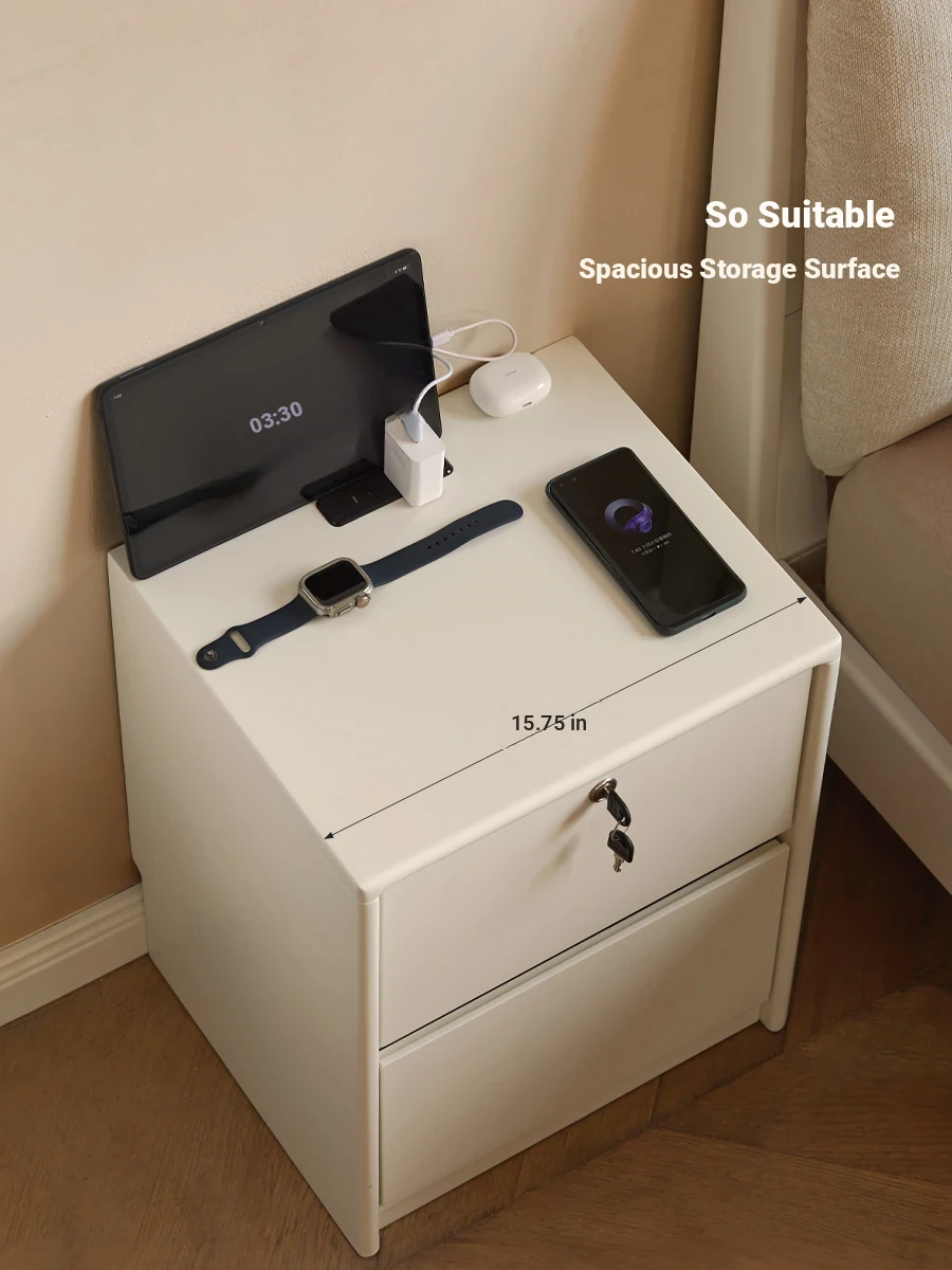 (Warm White) 15.75 in bedside table (with lock and socket) Y246A06
