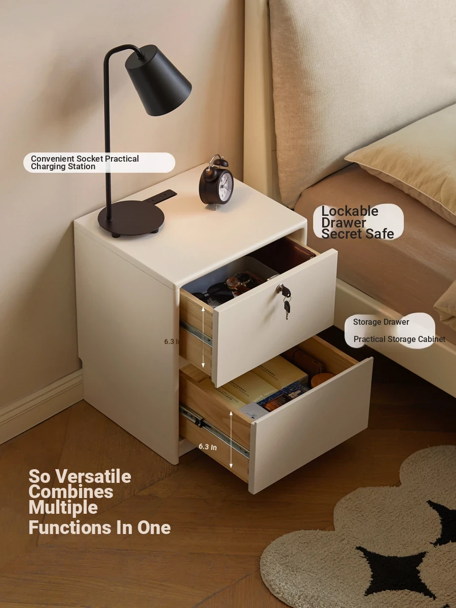 (Warm White) 15.75 in bedside table (with socket)(15.75in*13.78in*19.69in)Y246A06