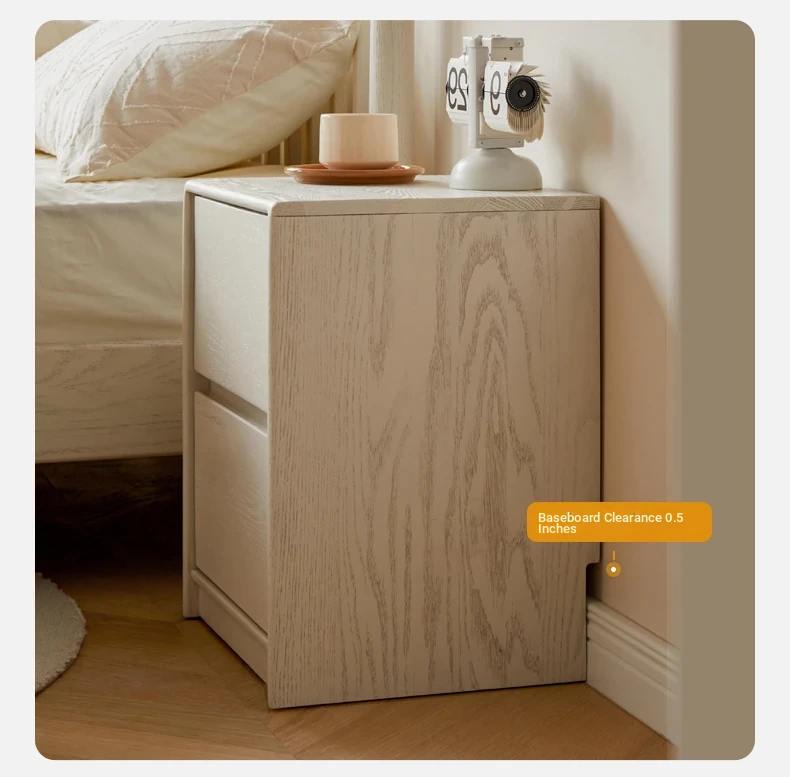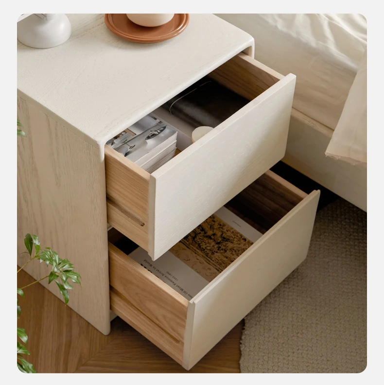 Genji Wooden Solid Wood Nightstand for Bedroom - White Lockable Storage Cabinet with Power Outlet - Oak Bedside Table with Drawer - Stylish and Functional Bedside Storage Solution