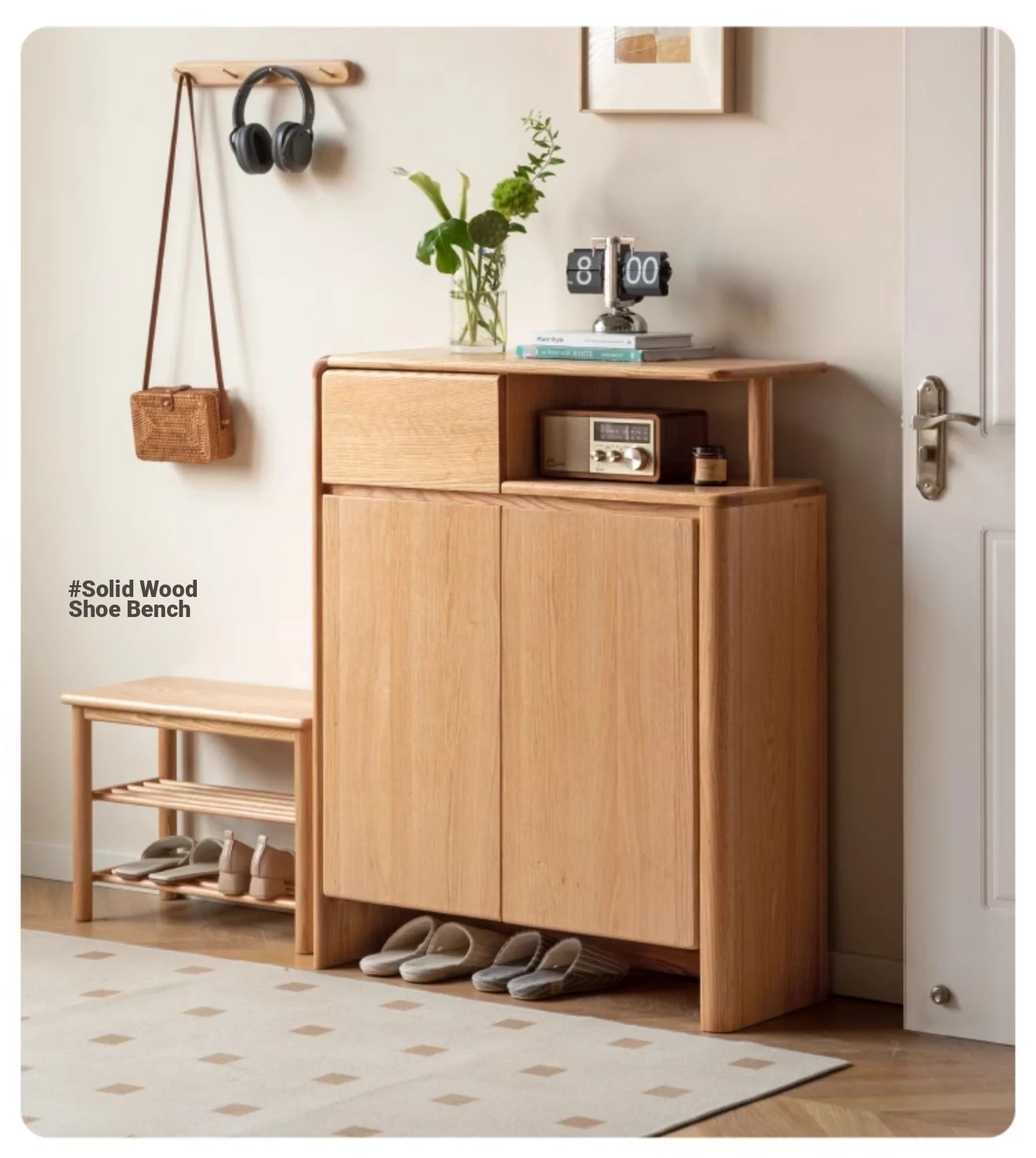 Genji Wooden Solid Wood Shoe Cabinet - Stylish Entryway Storage Unit for Living Room, Home Organizer, and Floor Standing Divider Cabinet. Perfect for Keeping Your Space Tidy and Welcoming!