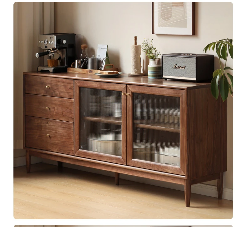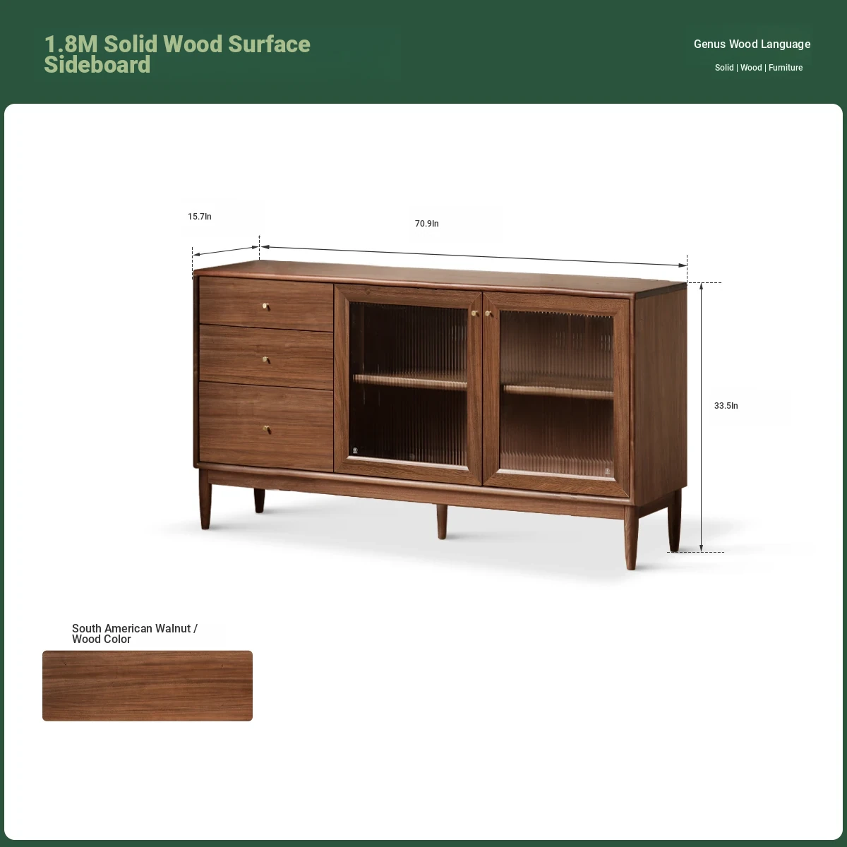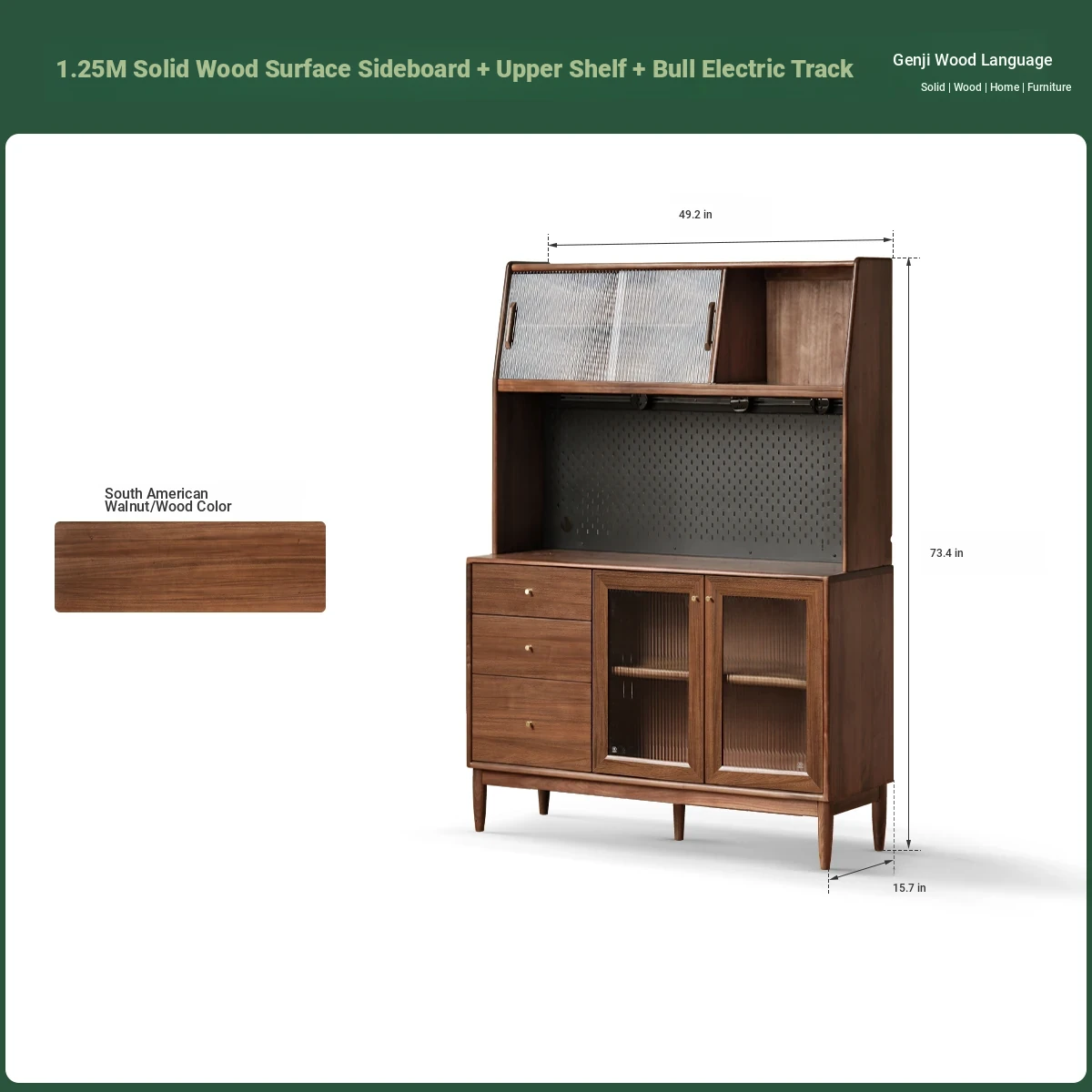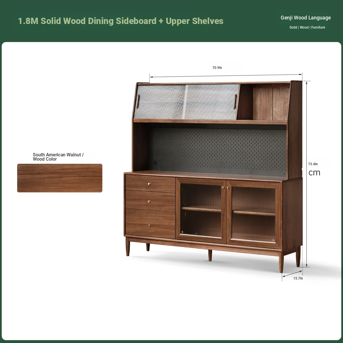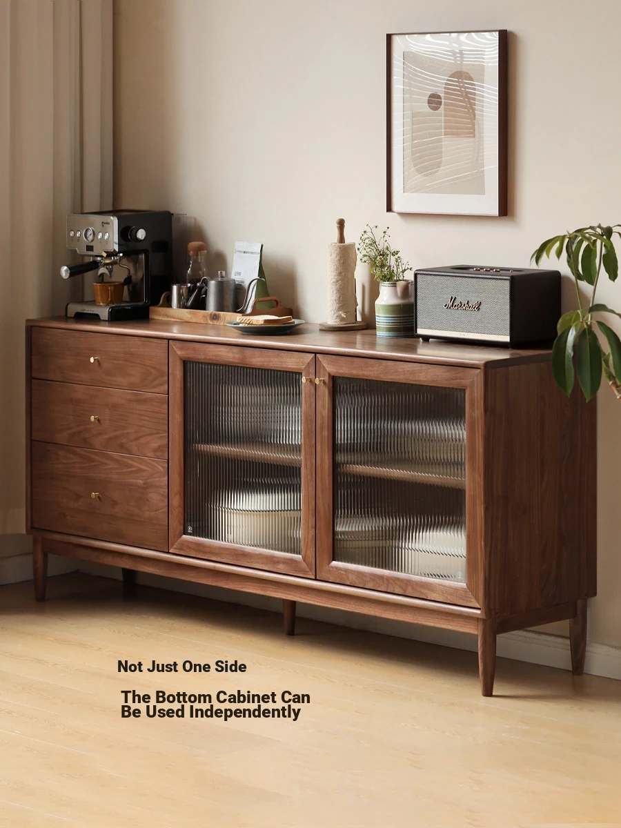 Genki Wood Multi-Functional Walnut Wood Sideboard - Space-Saving Full Solid Wood Storage Cabinet for Small Homes, Stylish Wall-Mounted Design, Perfect for Dining and Tea Storage.