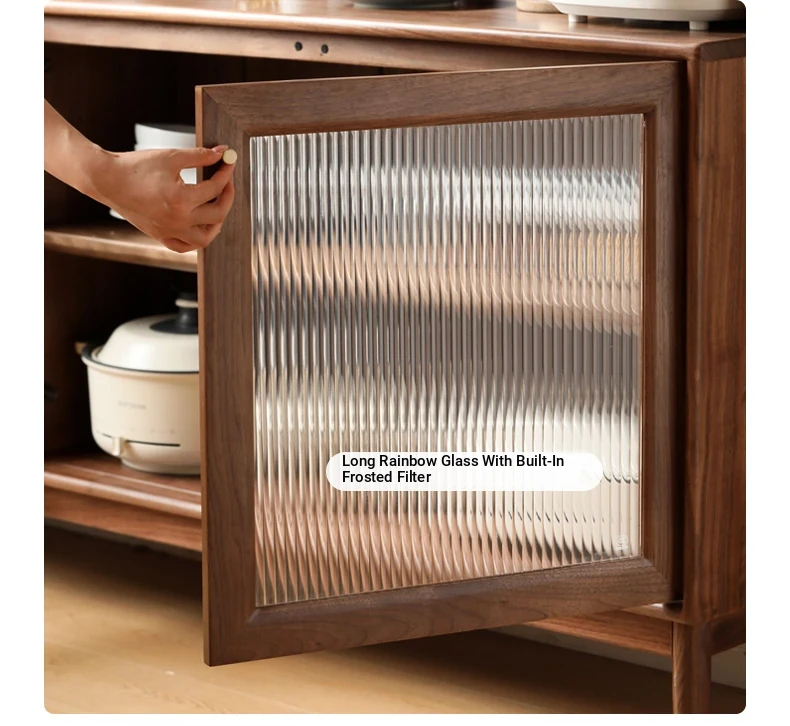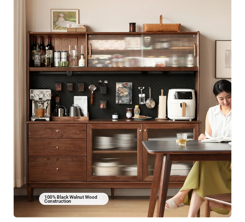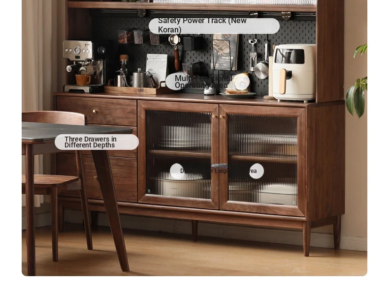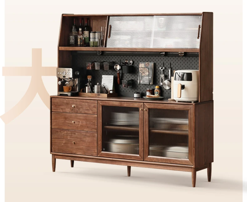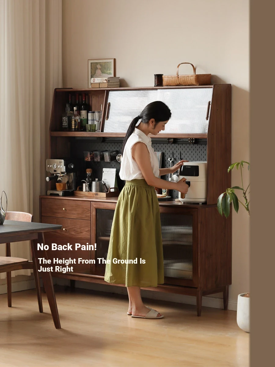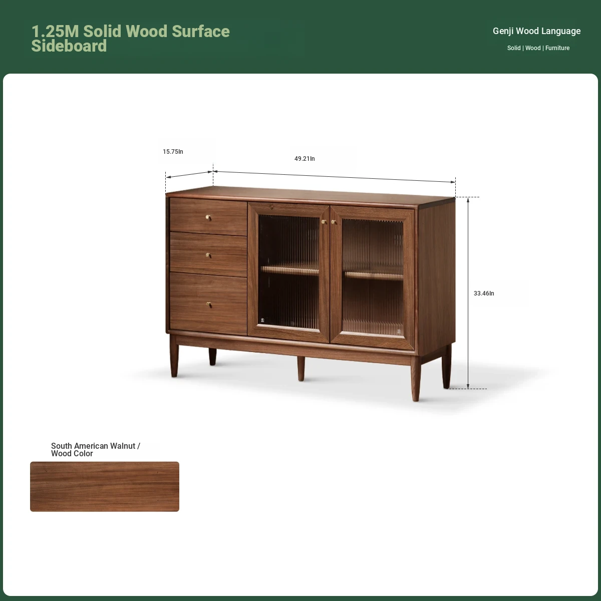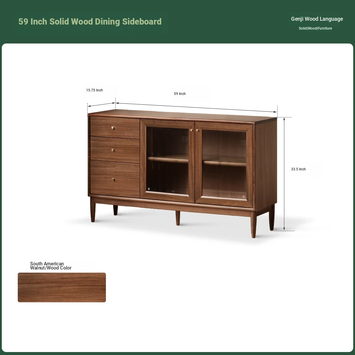 Genki Wood Multi-Functional Walnut Wood Sideboard - Space-Saving Full Solid Wood Storage Cabinet for Small Homes, Stylish Wall-Mounted Design, Perfect for Dining and Tea Storage.