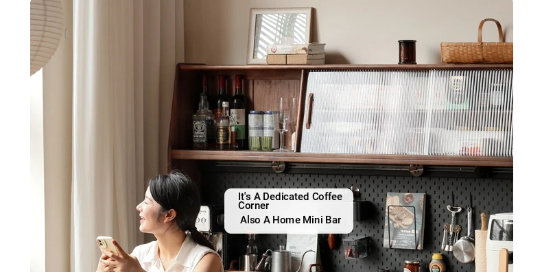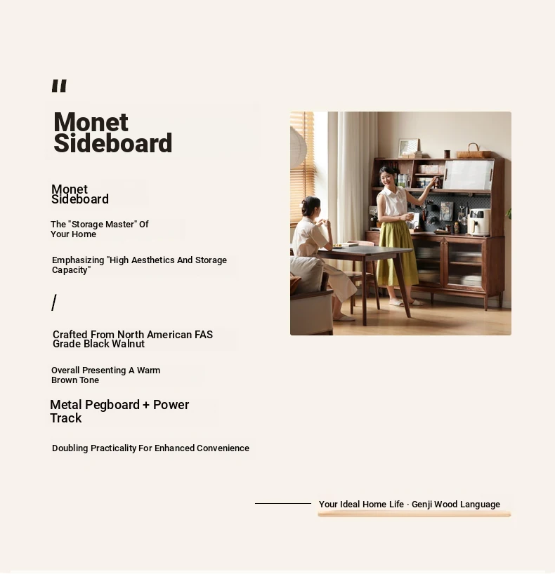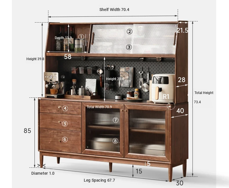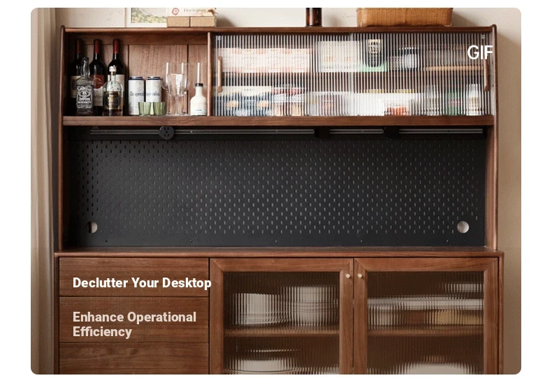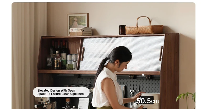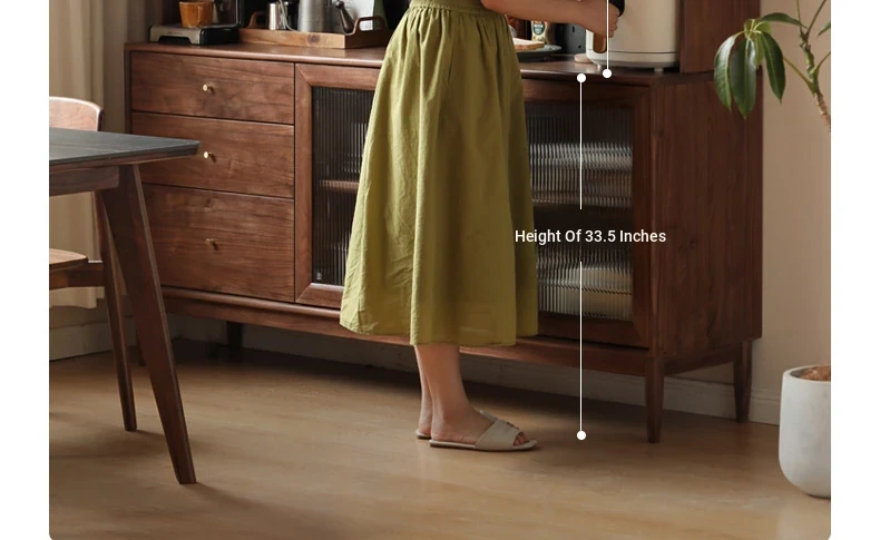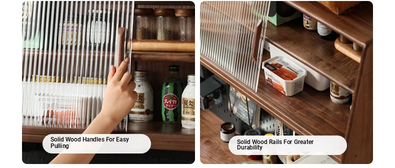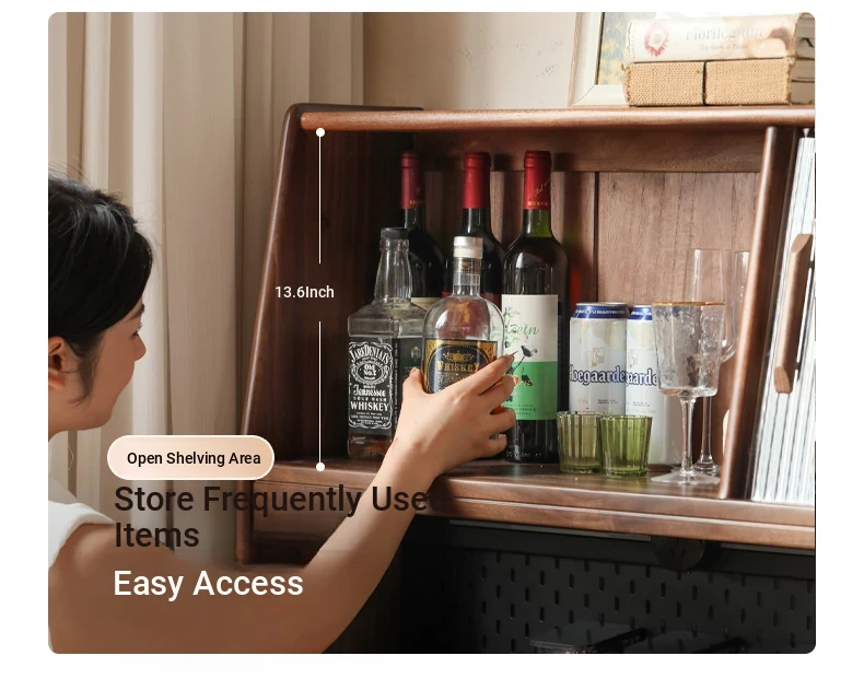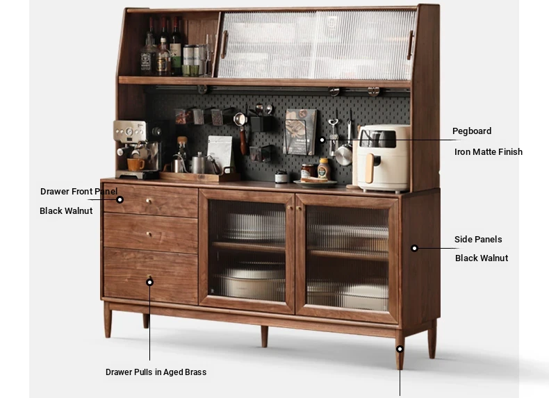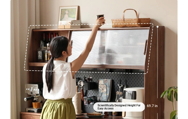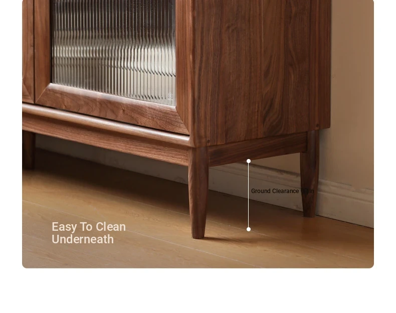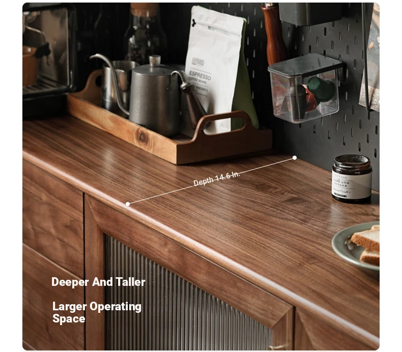 Genki Wood Multi-Functional Walnut Wood Sideboard - Space-Saving Full Solid Wood Storage Cabinet for Small Homes, Stylish Wall-Mounted Design, Perfect for Dining and Tea Storage.