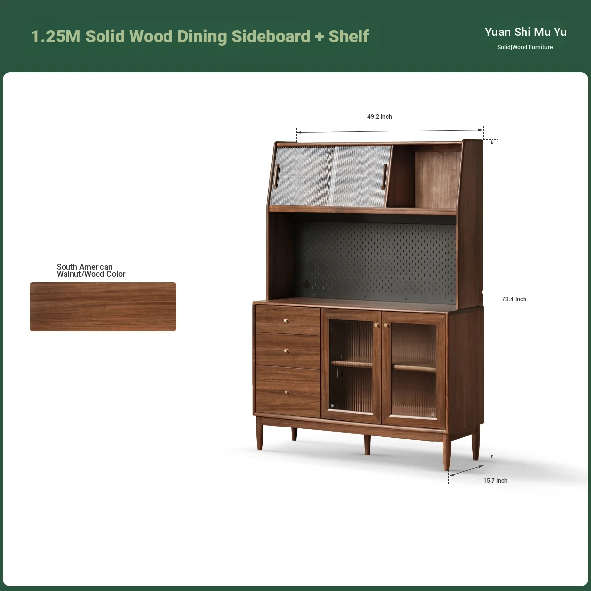 (South American Walnut) 49.21 in Solid Wood Noodles Sideboard + Shelf (49.21in*15.75in*73.43in)G35Q06