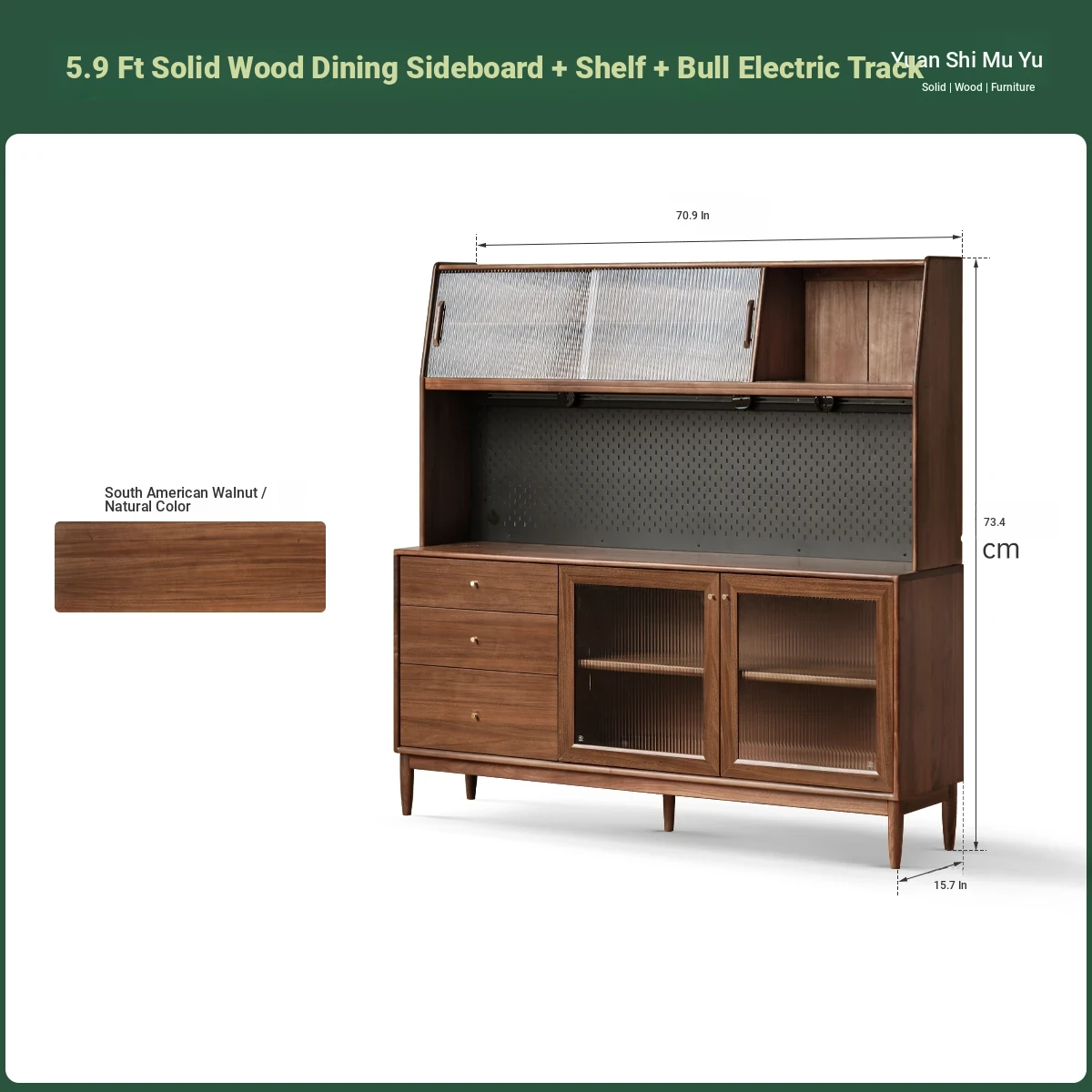 (South American Walnut) 70.87 in Solid Wood Noodles Sideboard + Shelf + Bull Electric Track (70.87in*15.75in*73.43in)G35Q06