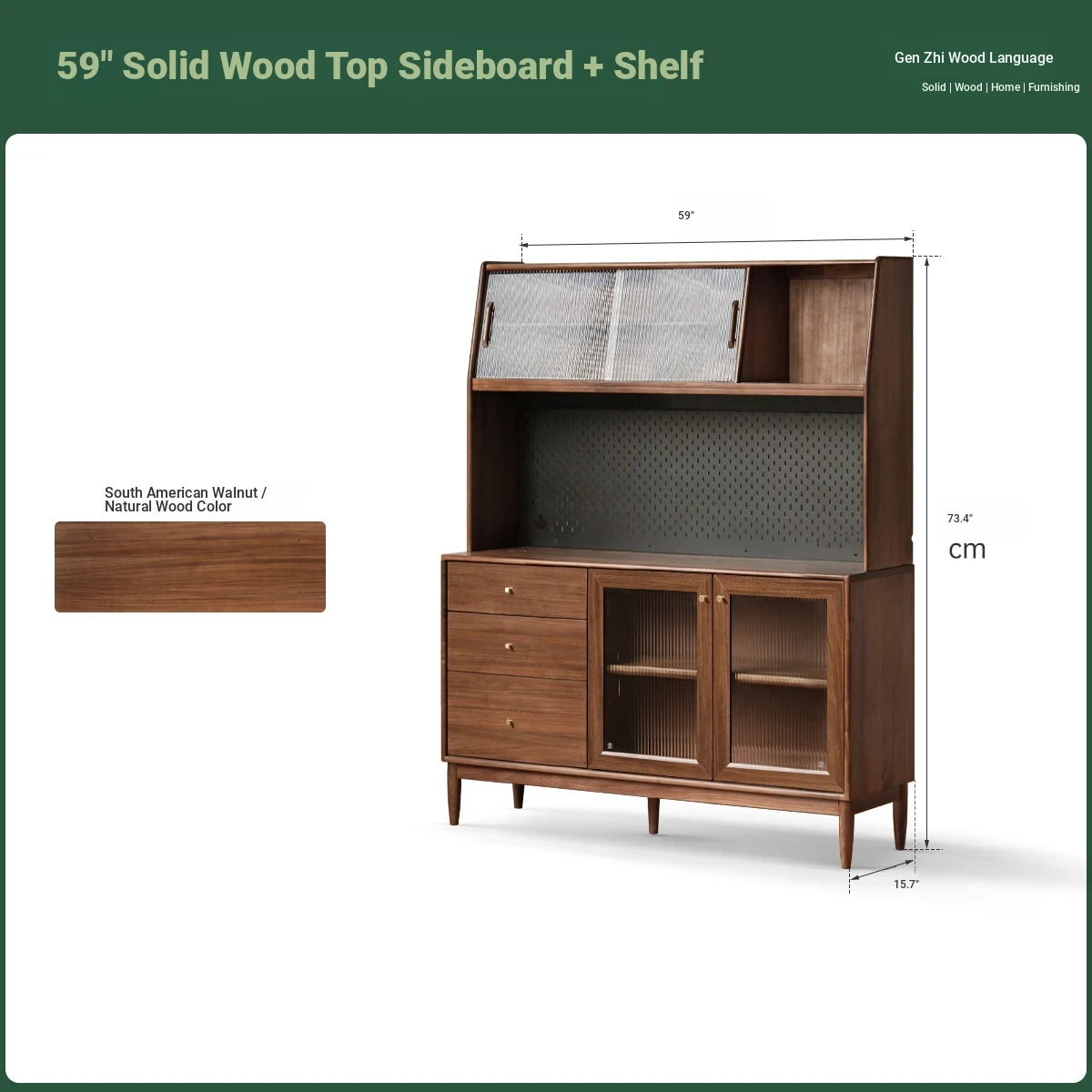 (South American Walnut) 59.06 in Solid Wood Noodles Sideboard + Shelf (59.06in*15.75in*73.43in)G35Q06