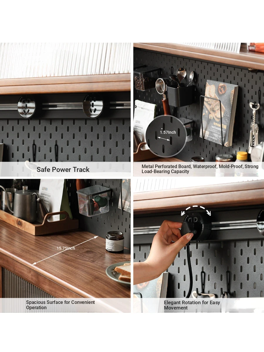 (South American Walnut) 59.06 in Solid Wood Noodles Sideboard + Shelf + Bull Electric Track (59.06in*15.75in*73.43in)G35Q06