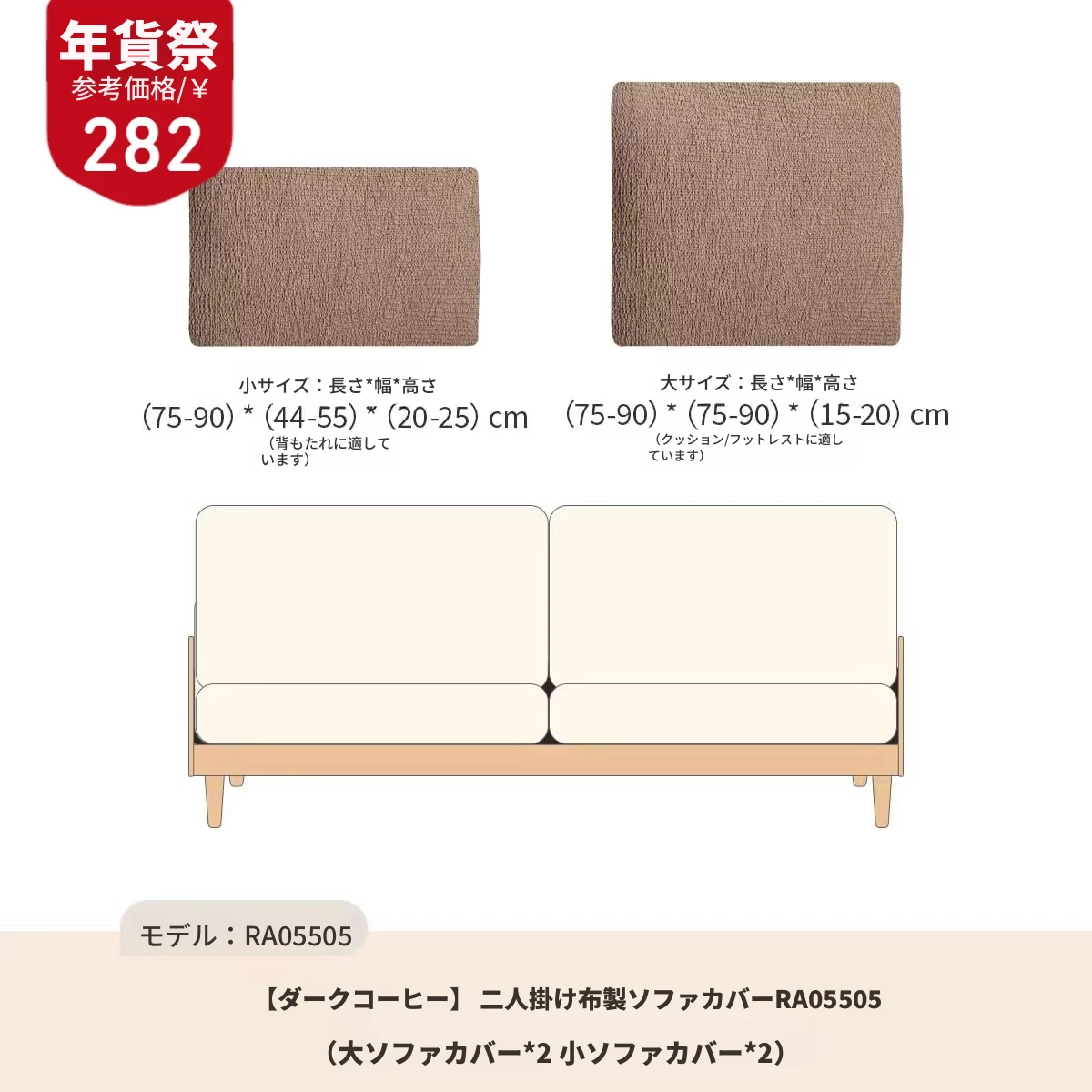 2人用ソファカバー(ダークブラウン)RA05505