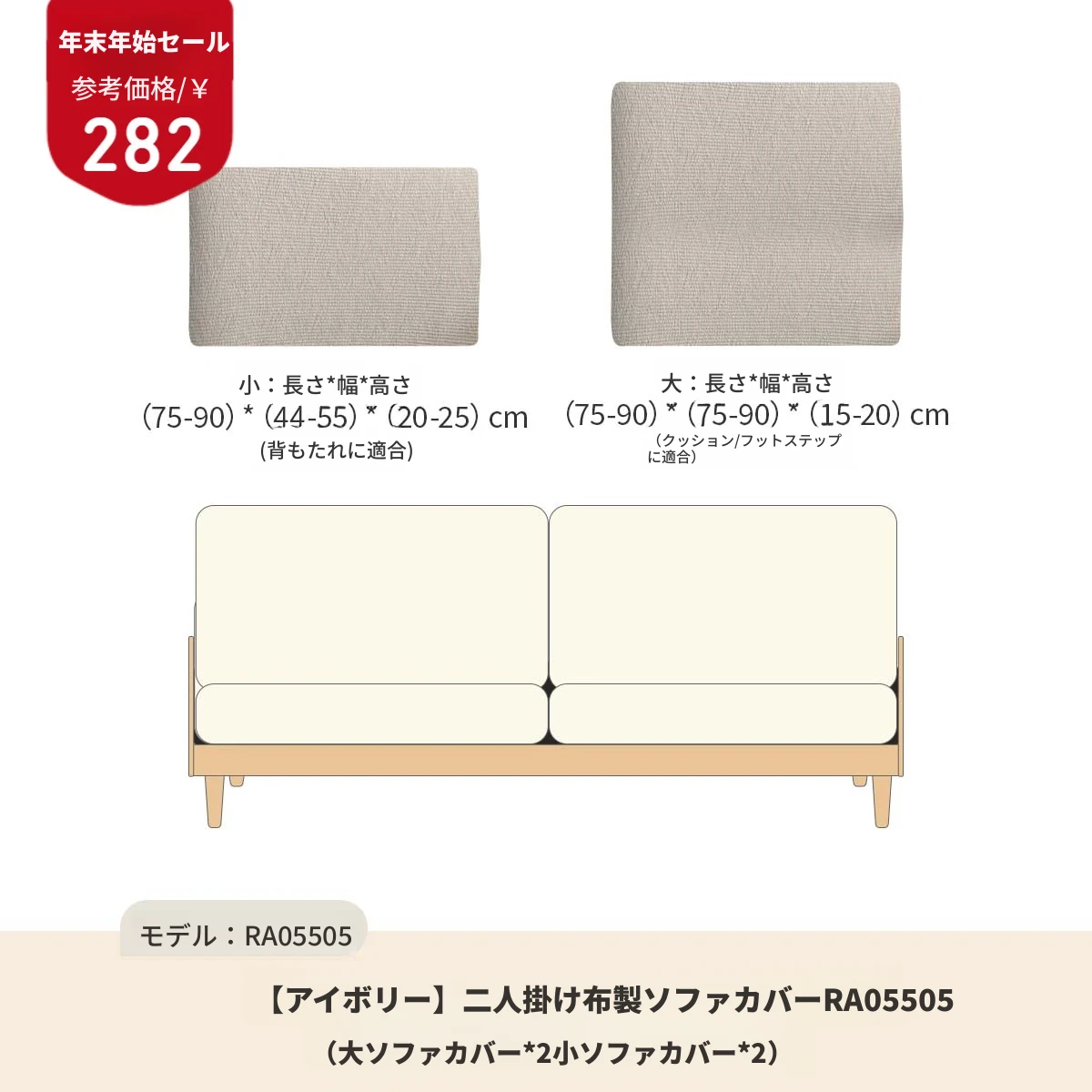 2人用ソファカバー(アイボリー)RA05505