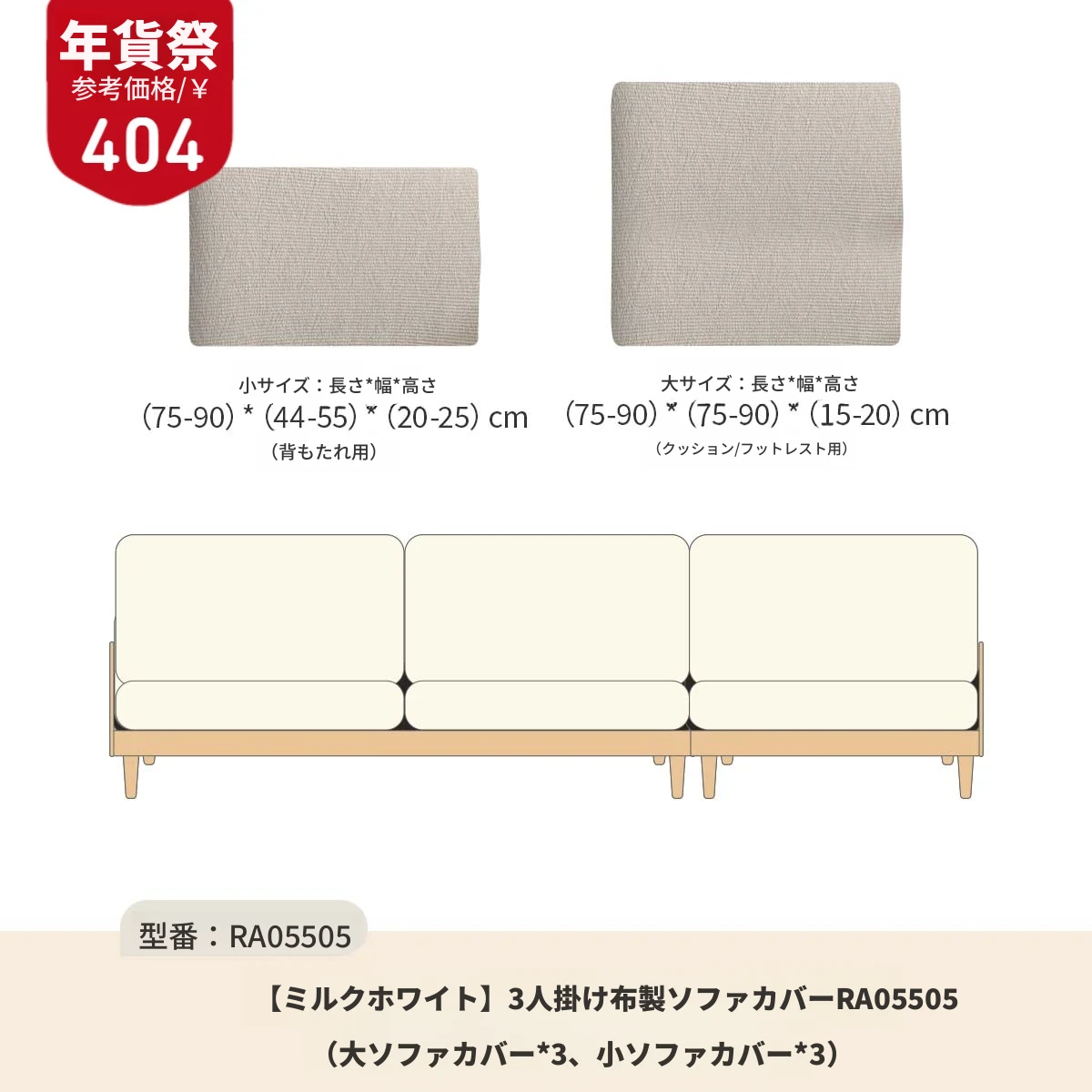 3人用ソファカバー(アイボリー)RA05505