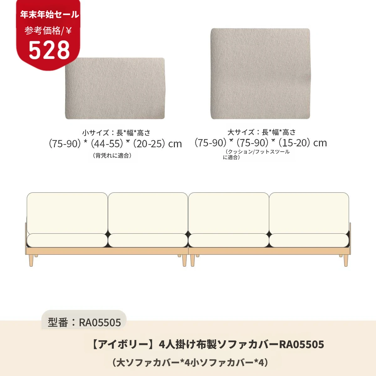 4人用ソファカバー(アイボリー)RA05505