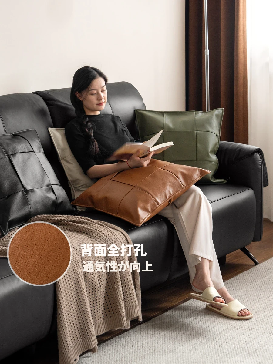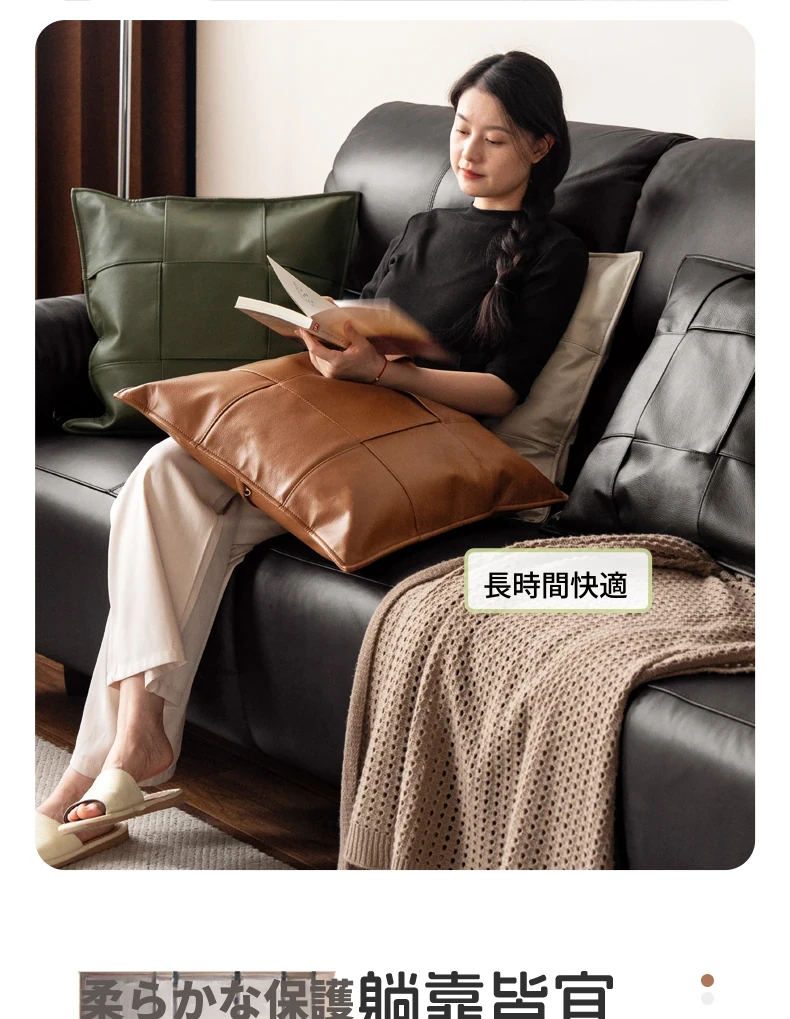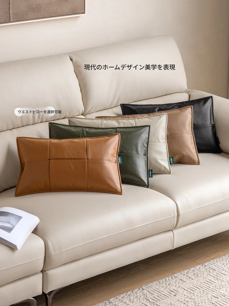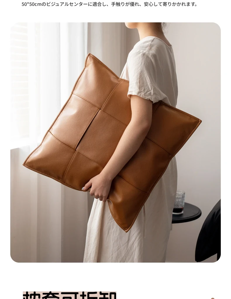 源氏木语のラグジュアリーソファクッション|シンプルでスタイリッシュ|寝室やベッドサイドに最適なリラックスサポート|快適な昼寝を実現する立体編み皮革クッション