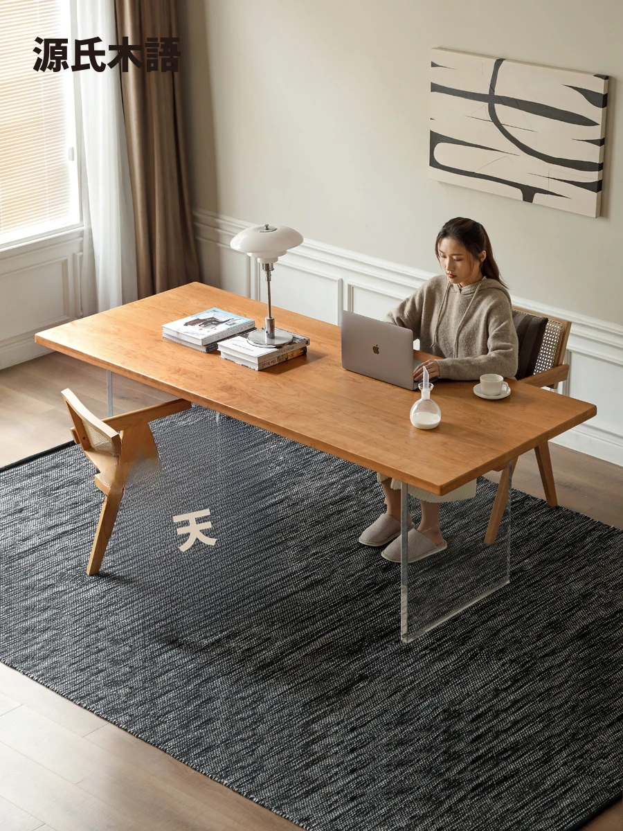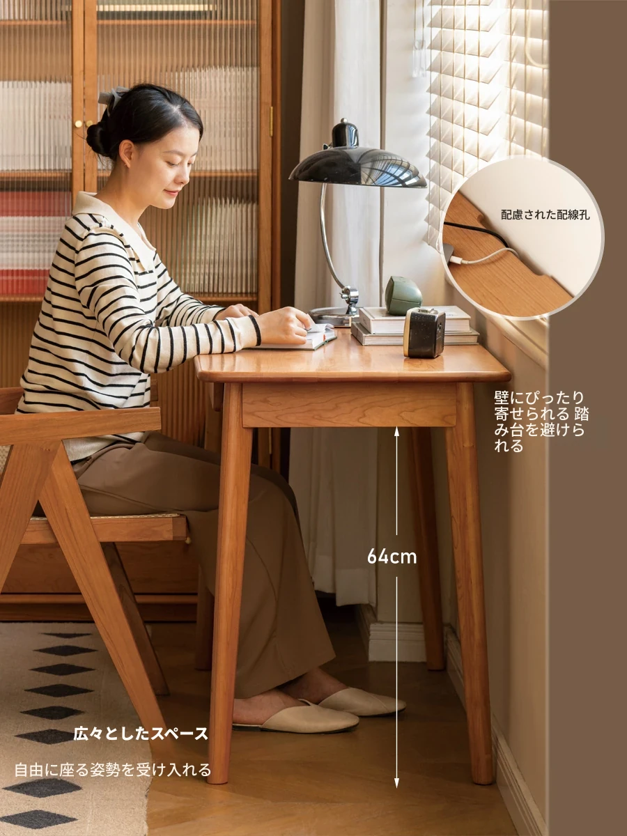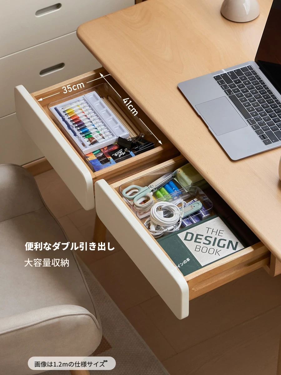 源氏木语 無垢材ダイニングデスク - ナチュラルクリームのオフィスデスク、書斎や家庭用に最適なホワイトオーク製、収納付きコンピューターデスク。シンプルで上品なデザインが魅力的!