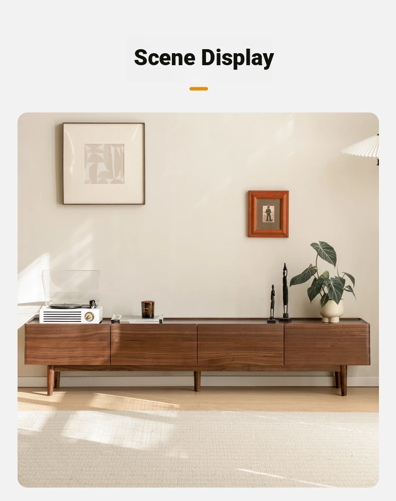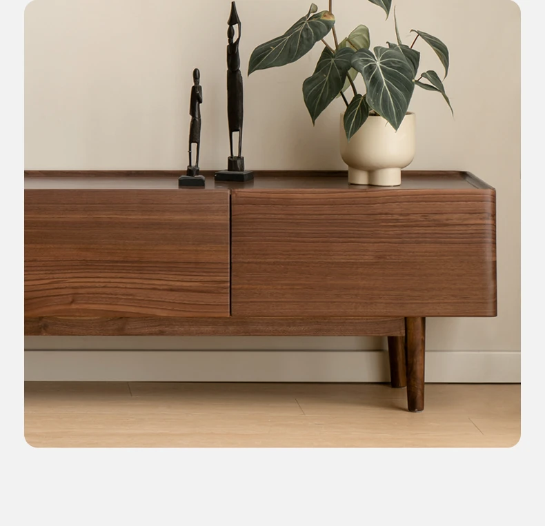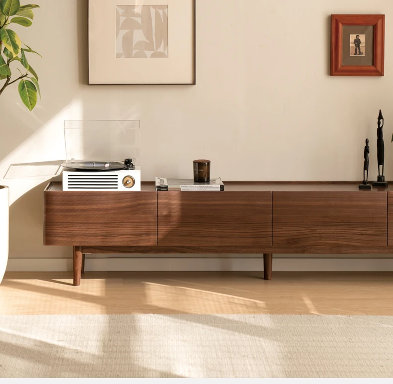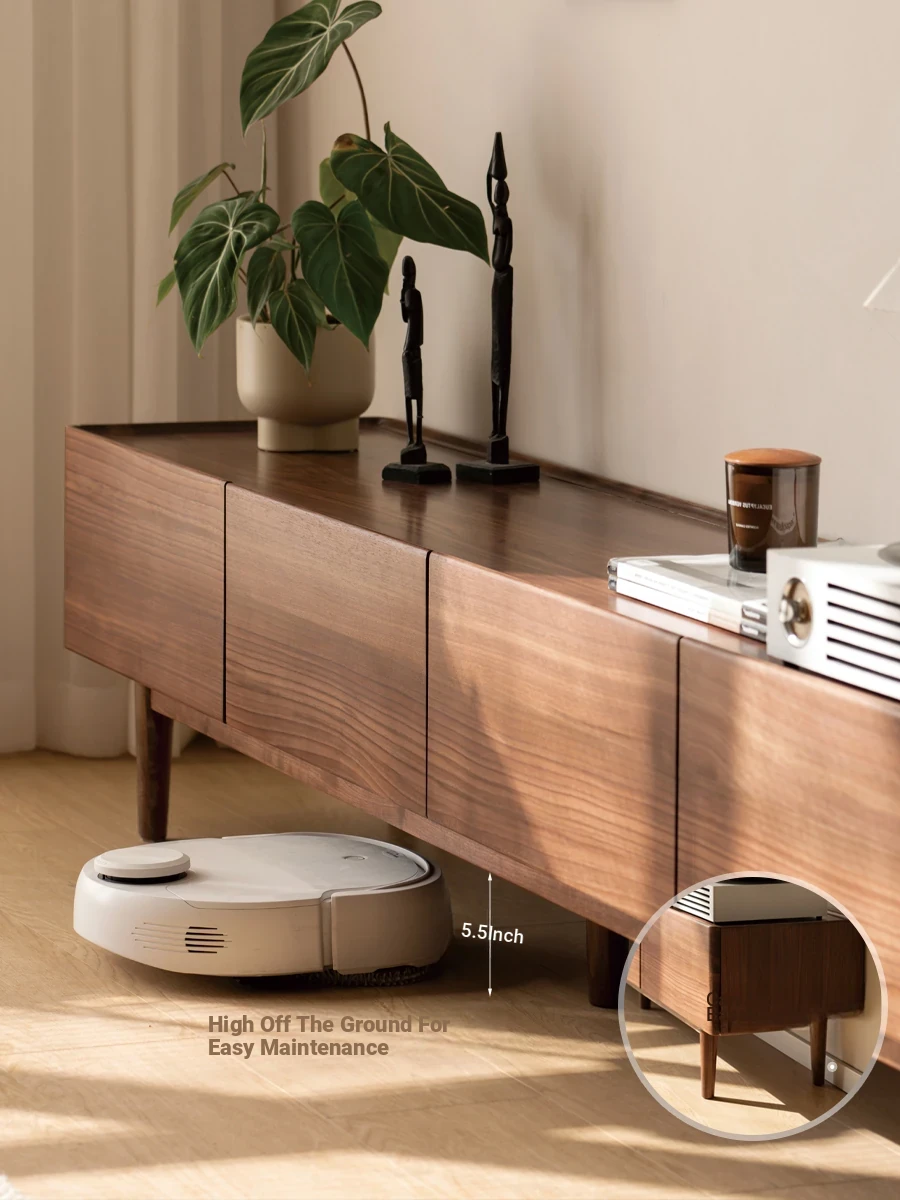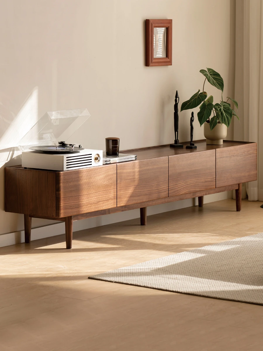 Genji Mu Yu Solid Wood TV Stand - Modern Minimalist Design for Small Living Rooms, Walnut High Foot Storage Cabinet, Perfect for Stylish and Functional Home Décor