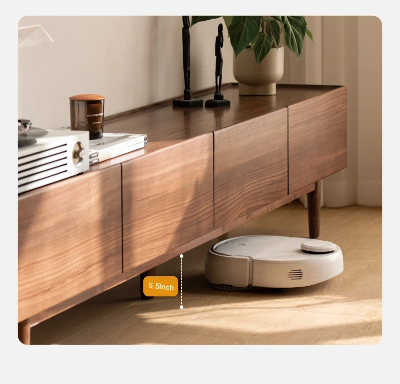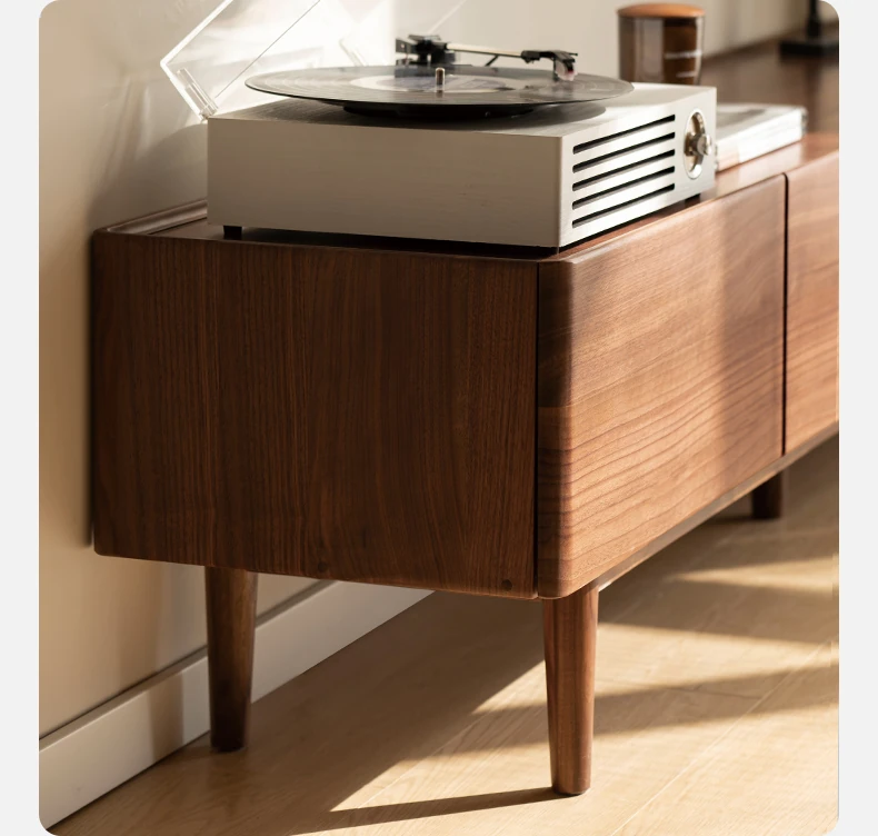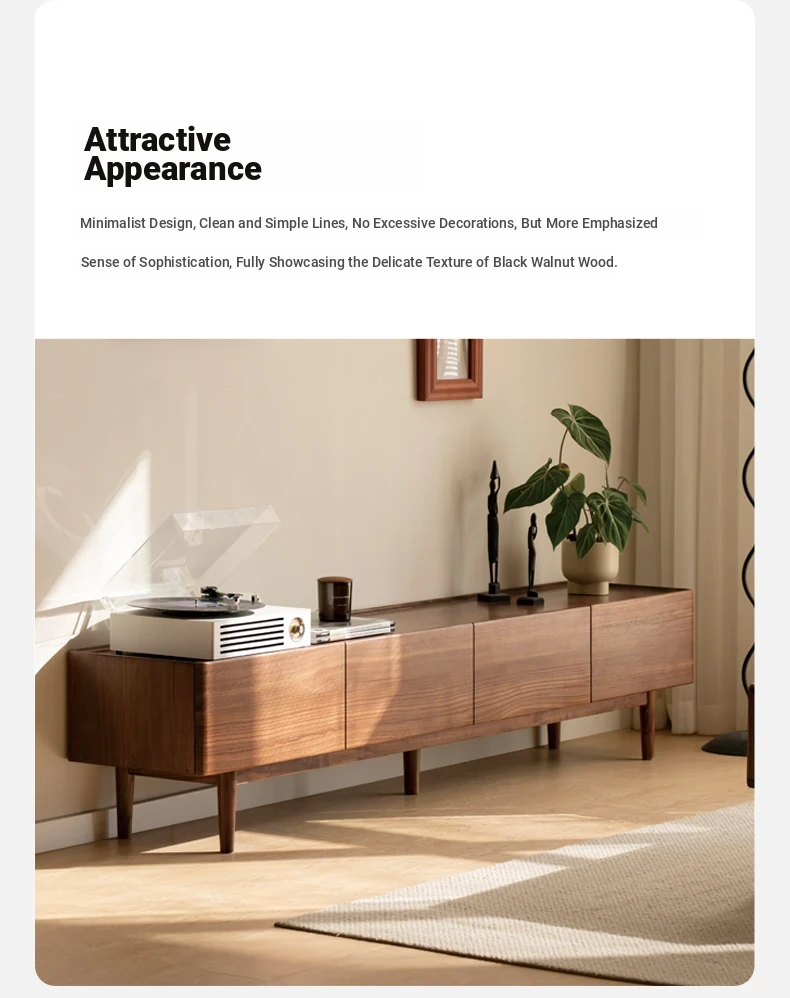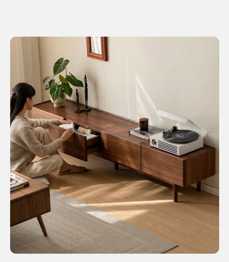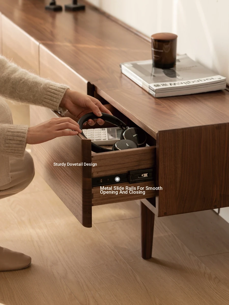 Genji Mu Yu Solid Wood TV Stand - Modern Minimalist Design for Small Living Rooms, Walnut High Foot Storage Cabinet, Perfect for Stylish and Functional Home Décor
