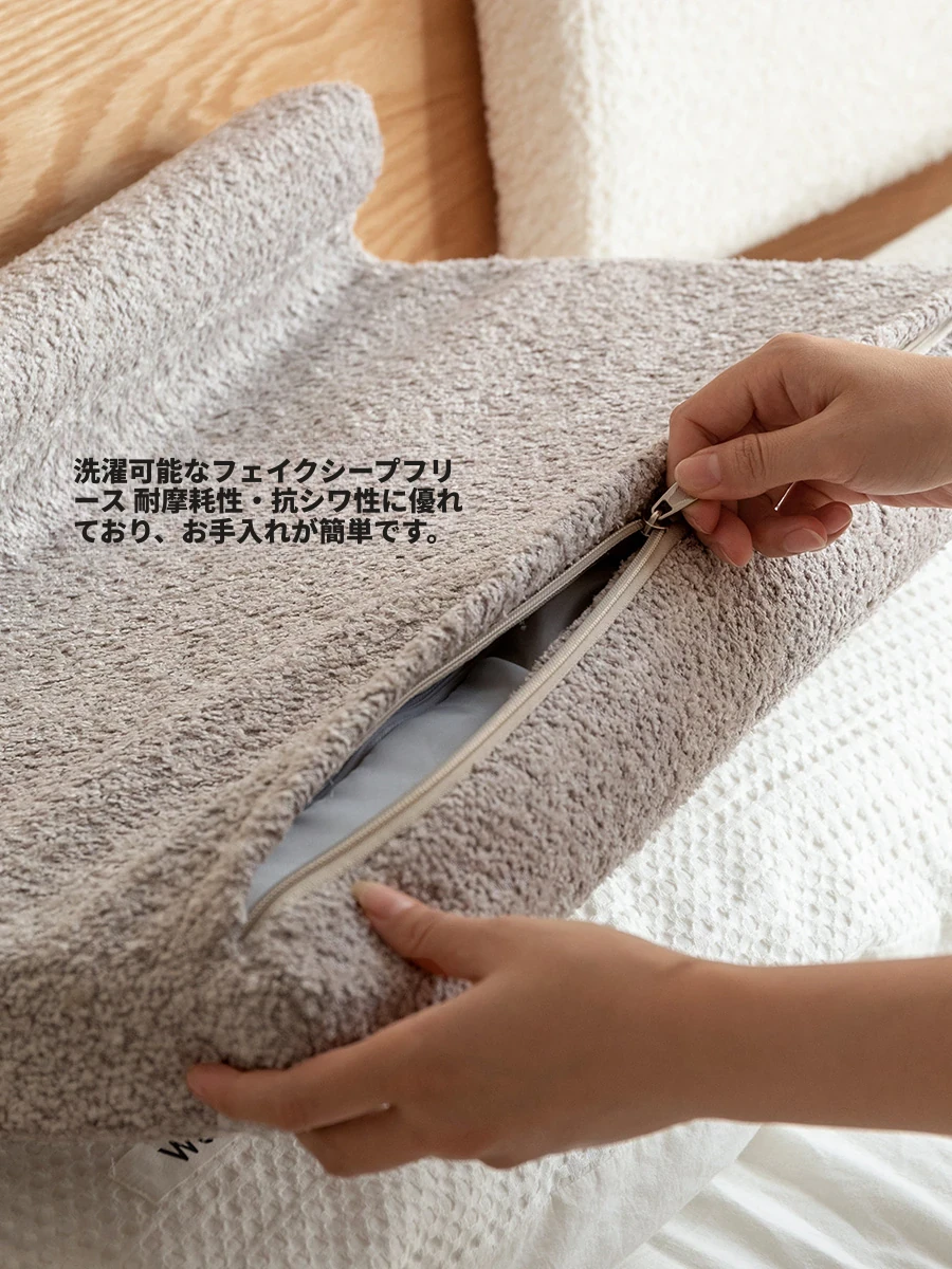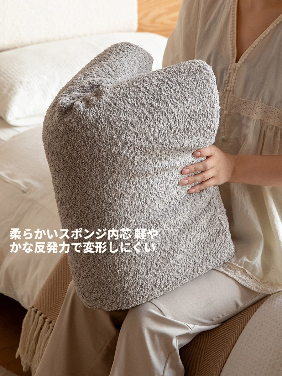 源氏木語のシンプルなベッドサイドクッション – 柔らかいラムフリース素材で、掛けられるデザインのプレミアム背もたれ枕。クリーミーな雰囲気で、あなたの寝室を華やかに彩ります。快適な睡眠環境をお楽しみください!