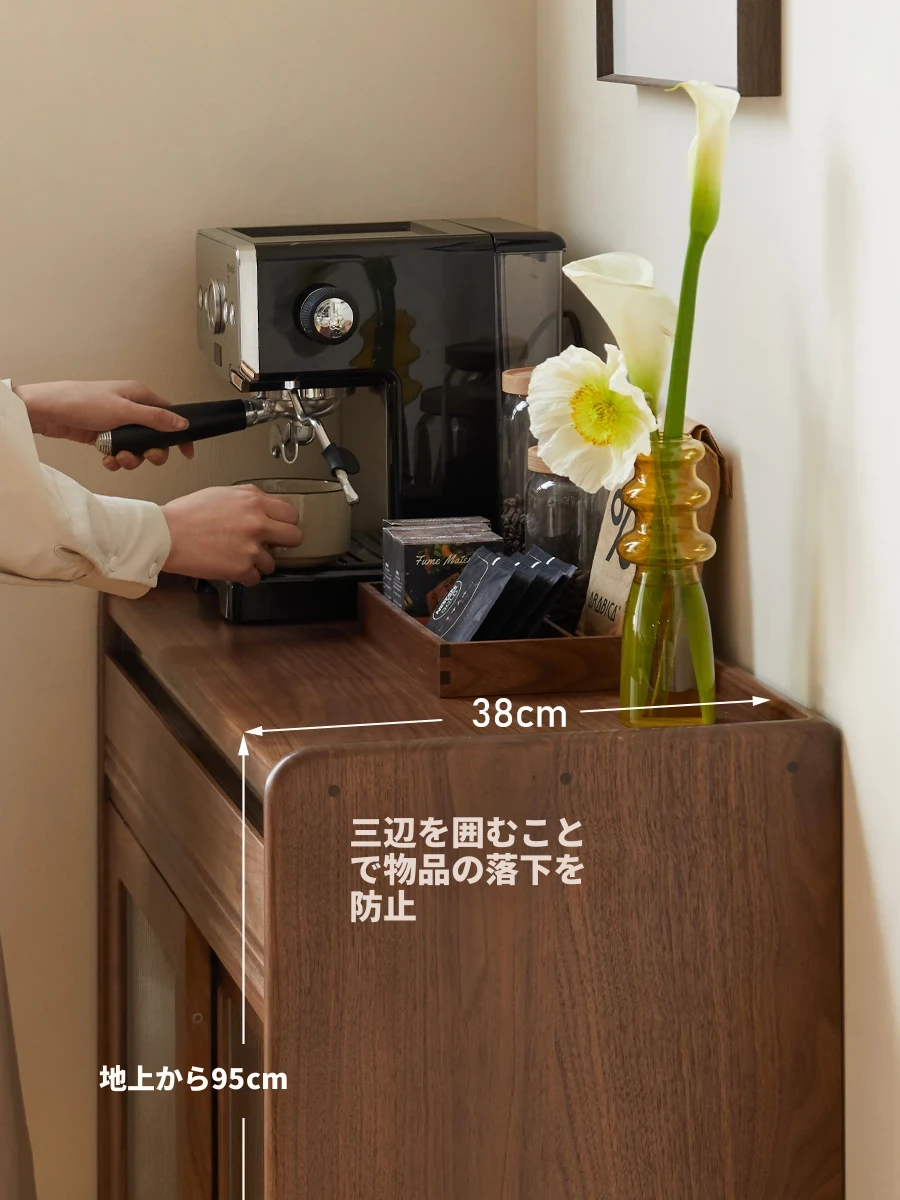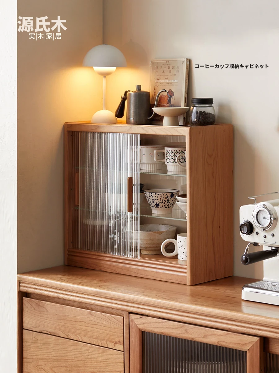 源氏木語 チェリー無垢材のダイニングサイドキャビネット - シンプルでスタイリッシュなガラス引き戸付き、家庭にぴったりな収納スペース!