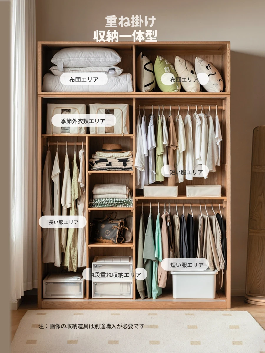 源氏木語 シンプルな無垢のオーク材プルドアクローゼット - おしゃれで機能的な収納、寝室にぴったりなナチュラルスタイルキャビネット!